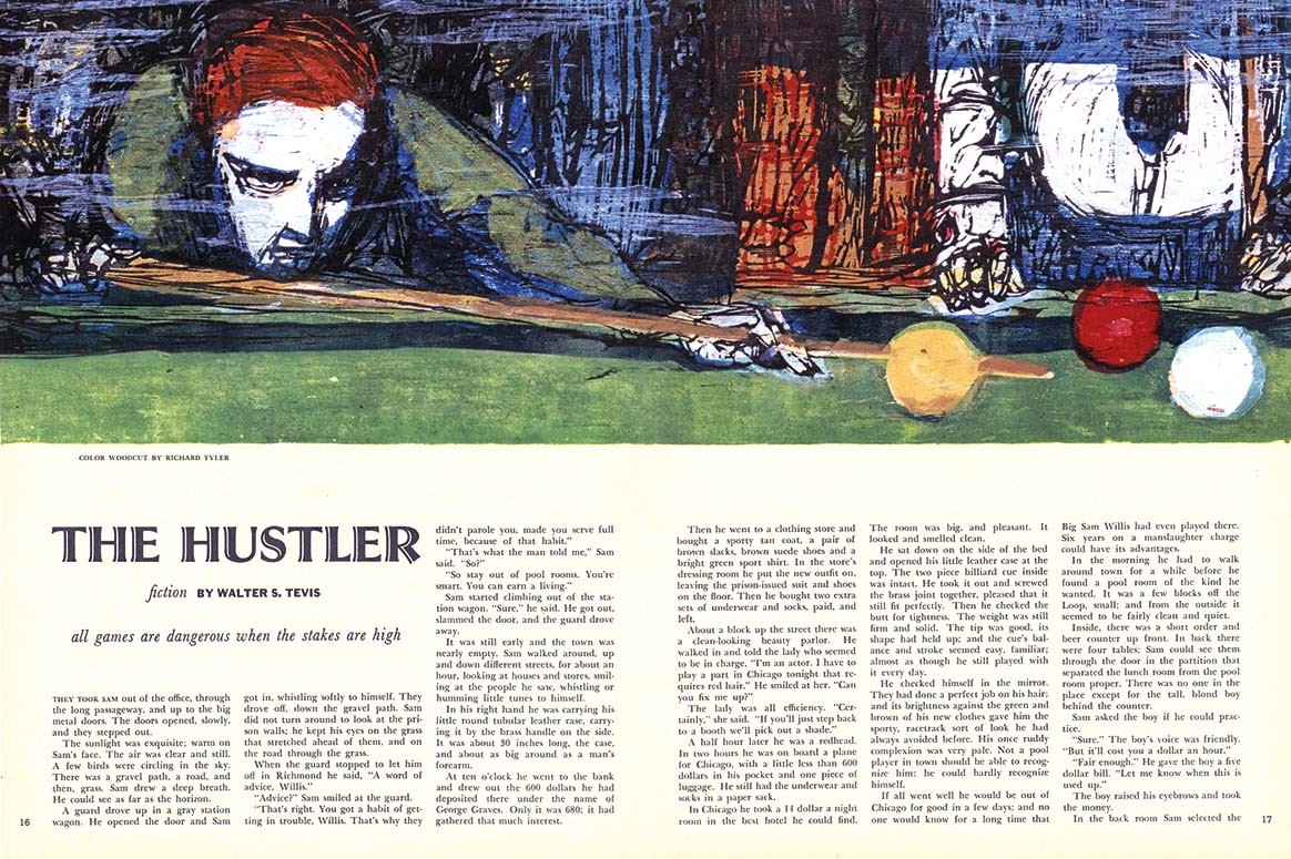 Рассказ Уолтера С. Тревиса «Бильярдист» о завзятом игроке в бильярд, ввязавшемся в опасную игру, был напечатан в январском выпуске Playbill 1957 года. Сопроводительные иллюстрации Ричарда Тайлера демонстрируют дерзость, с которой главный персонаж Сэм Уиллис пытается изменить свою жизнь, в то время как рассказ Тревиса опровергает безрассудное – а в этом случае еще и фатальное – убеждение, что, начав жизнь «с чистого листа», человек может полностью измениться или победить свои слабости.
