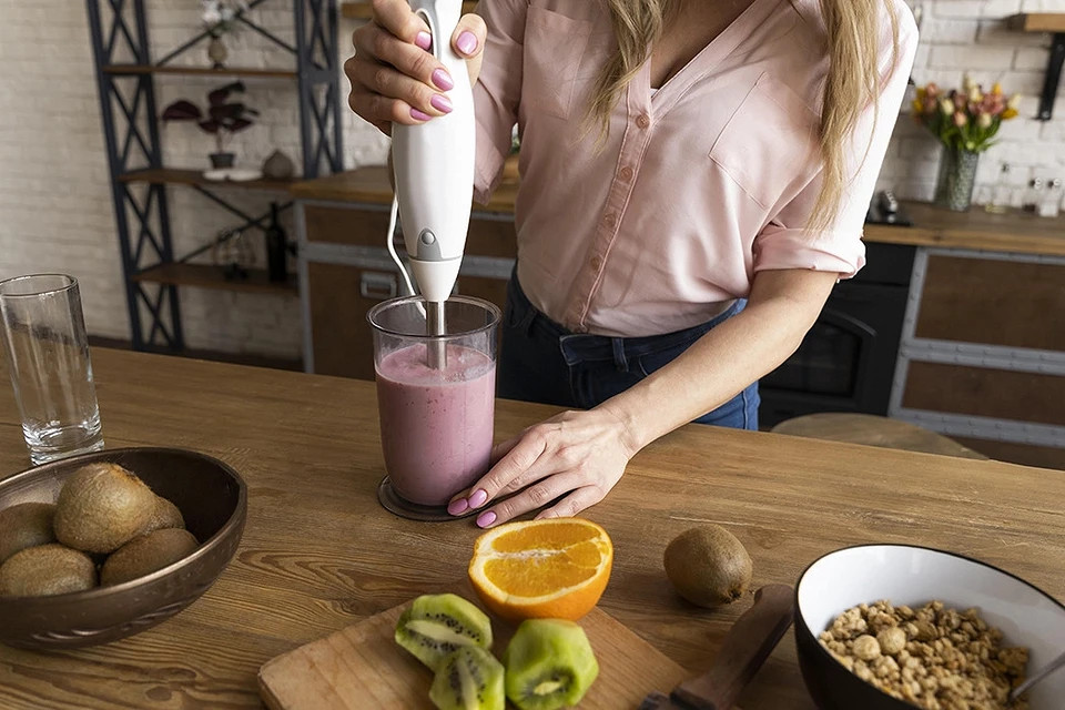 Блендер — это кухонный прибор, который превращает продукты в однородную массу: пюре, соусы, смузи, крем-супы и не только. Работает просто — лопасти на высокой скорости измельчают все, что попадает внутрь.