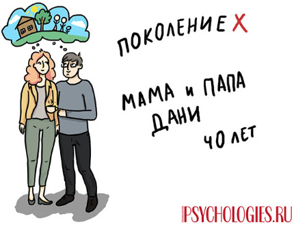 Поколение X — самая многочисленная прослойка. Такие люди умеют адаптироваться к любым ситуациям, находить язык с разными группами и аудиторией. В детстве они оказались предоставлены сами себе: родители всегда работали. Свободное время X (мама и папа Дани) поводили на улице, поэтому все умели делать сами — приготовить, одеться, сделать уроки. Они приучены к мобильности и самостоятельности (кружки, секции, лагеря).