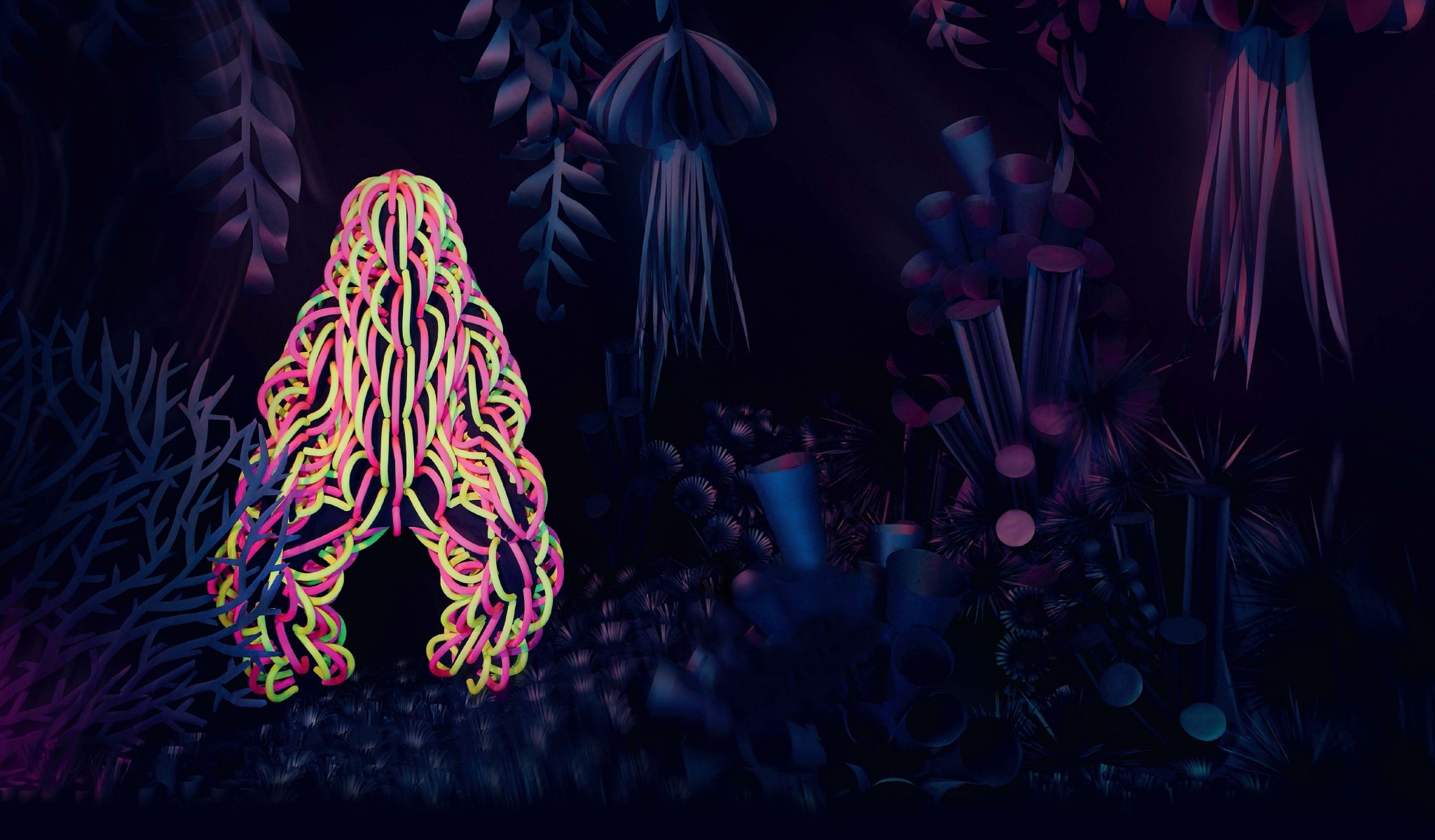 «Так и есть – это мои ауры, – говорит Ермаков. – Я беру некое черное тело, вокруг которого конструирую цветную историю из элементов. И первое, что приходит в голову, глядя на костюмы, особенно если видишь их в ультрафиолетовом свете, – это энергетические оболочки». Роман говорит, что, по сути, все эти костюмы – автопортреты в определенный период времени, образы, которые живут внутри него. Нужно только внимательнее прислушаться к себе, начать изучать себя и не бояться принимать свои перевоплощения. Некоторые образы появляются очень точно и мгновенно. «Еду в метро, вдруг увидел картинку в голове–и быстро ее зарисовал. Какие-то образы требуют доработки. Я думаю, что они проявляются из параллельных вселенных или каких-то миров, которые находятся внутри нас. Если ты открыт к этому откровению, путешествию в невероятное, оно начинает к тебе приходить чаще и пропускает дальше внутрь себя. В какой-то момент открываешься, и тогда начинается это путешествие. Необязательно, что много из него вынесешь и все применишь на практике, но ты поймешь, что есть нечто большее, чем то, что нас окружает в привычном мире. А если ты занят бытовыми делами и вечно суетишься, то этот прекрасный мир существует параллельно и никак тебя не касается».