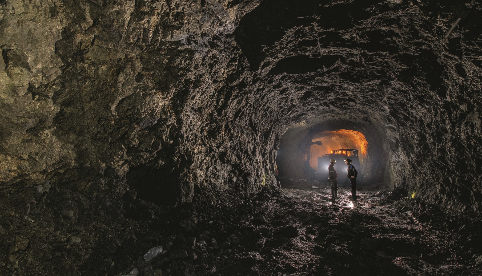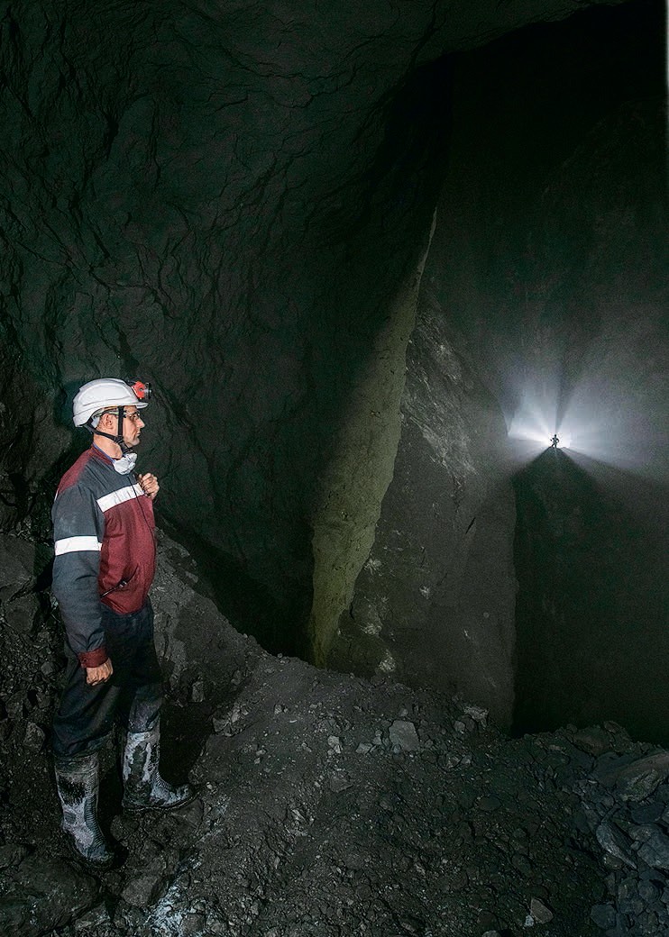 Трясет прилично. Если кому довелось ездить по проселку в кузове грузовика, ощущения сопоставимые. Ухабы, лужи. Это дорога для сильных машин. Из фонарика на каске вырывается мощный луч и пляшет по стене тоннеля. В легкой дымке от выхлопа транспортера луч жирный, почти осязаемый. Дымок удаляется из тесного тоннеля быстро, но не мгновенно. Однако, когда транспортер останавливается, на глубине 1075 м никакой затхлости или духоты не ощущается. Шахта отлично проветривается, и воздух тут на удивление свежий. Мы находимся в подземном руднике (тут все произносят это слово с ударением только на первый слог) Гайского горно-обогатительного комбината, входящего в структуру Уральской горно-металлургической компании. На самом нижнем вырабатываемом сейчас горизонте. В будущем добыча продолжится еще ниже, на глубинах до 1700 м.