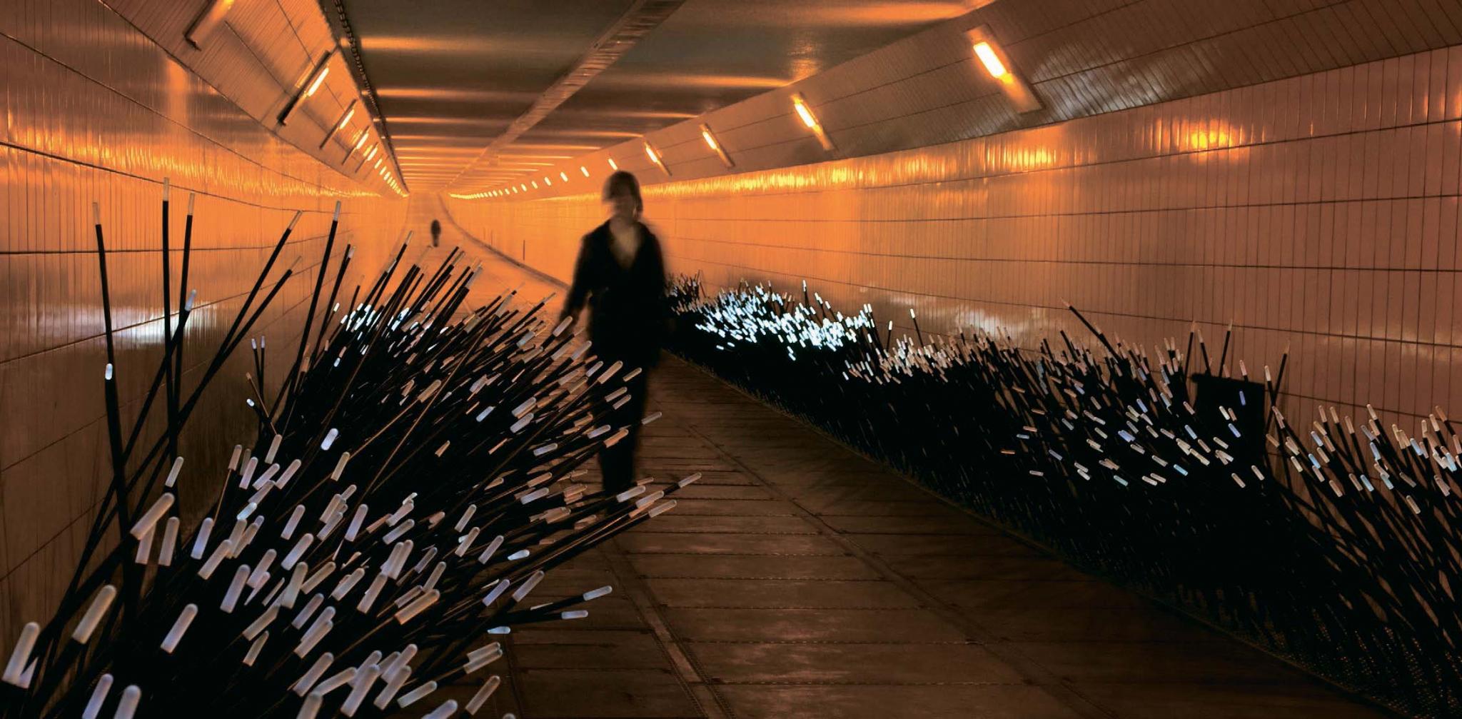 «Это вопрос не столько технологии, сколько идеологии, – говорит Даан. – Вопрос о том, как очеловечить окружающие нас пространства, заставить их реагировать на наше поведение, эмоции». Одним из таких исследований художника стала инсталляция Dune – сплетение оптоволоконных нитей разной высоты, светодиодов и датчиков, микрофонов и динамиков. Объединенные в интерактивную сеть, они живо реагируют, дрожа, издавая звуки и перемигиваясь, на происходящее вокруг, на движение и прикосновение. 100-метровая версия Dune демонстрировалась в подземном переходе Сиднея, а 60-метровую и сегодня можно увидеть на набережной Роттердама.