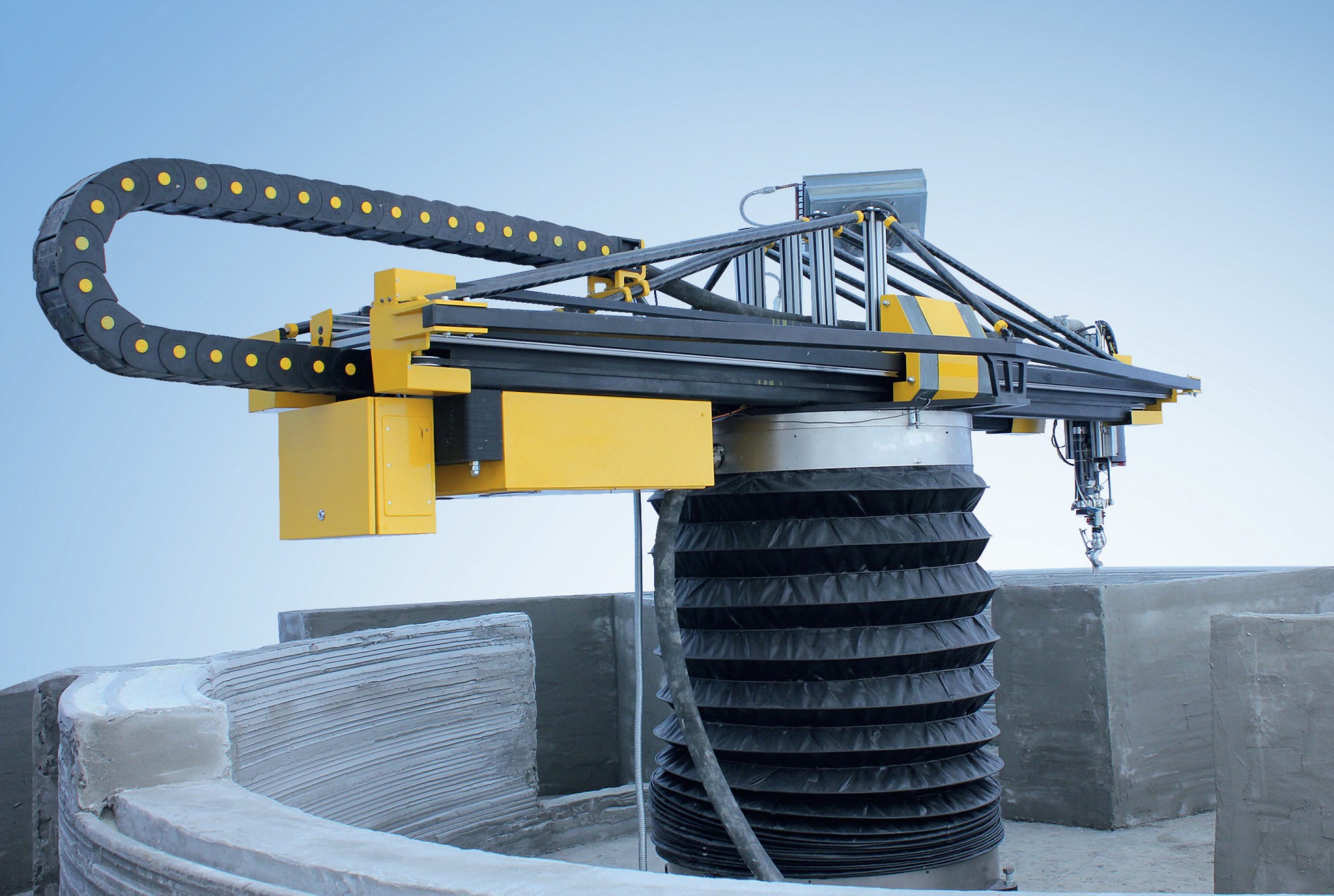 Примерно пять лет назад молодой инженер из Иркутска Никита Чен-юн-тай, специализировавшийся на разработке станков с ЧПУ, предложил собственную конструкцию строительного принтера. Он функционирует в системе не прямоугольных (как обычный офисный струйный принтер), а полярных координат и печатает здание не снаружи, а изнутри. Принтер устанавливается на подготовленной площадке и начинает послойно, согласно компьютерной 3D-модели, выстраивать вокруг себя стены будущего сооружения. Конструктивно он схож с башенным краном: на конце стрелы, вращающейся в диапазоне 360 градусов, помещен экструдер, укладывающий слоями быстрозастывающий цементобетонный раствор. Для развития и продвижения этой технологии и была создана компания Apis Cor.