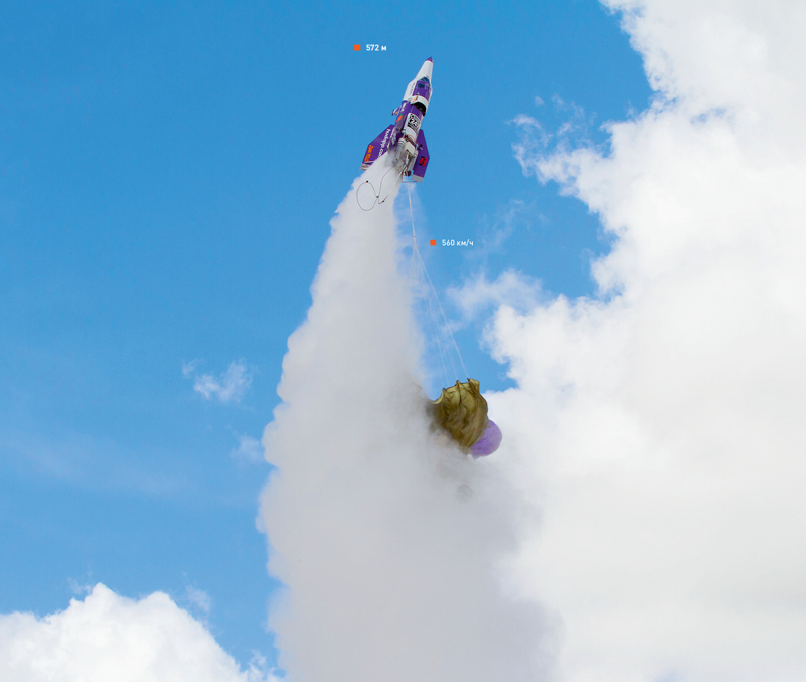 Во время последнего полета Майка Хьюза один из парашютов был сорван еще при старте