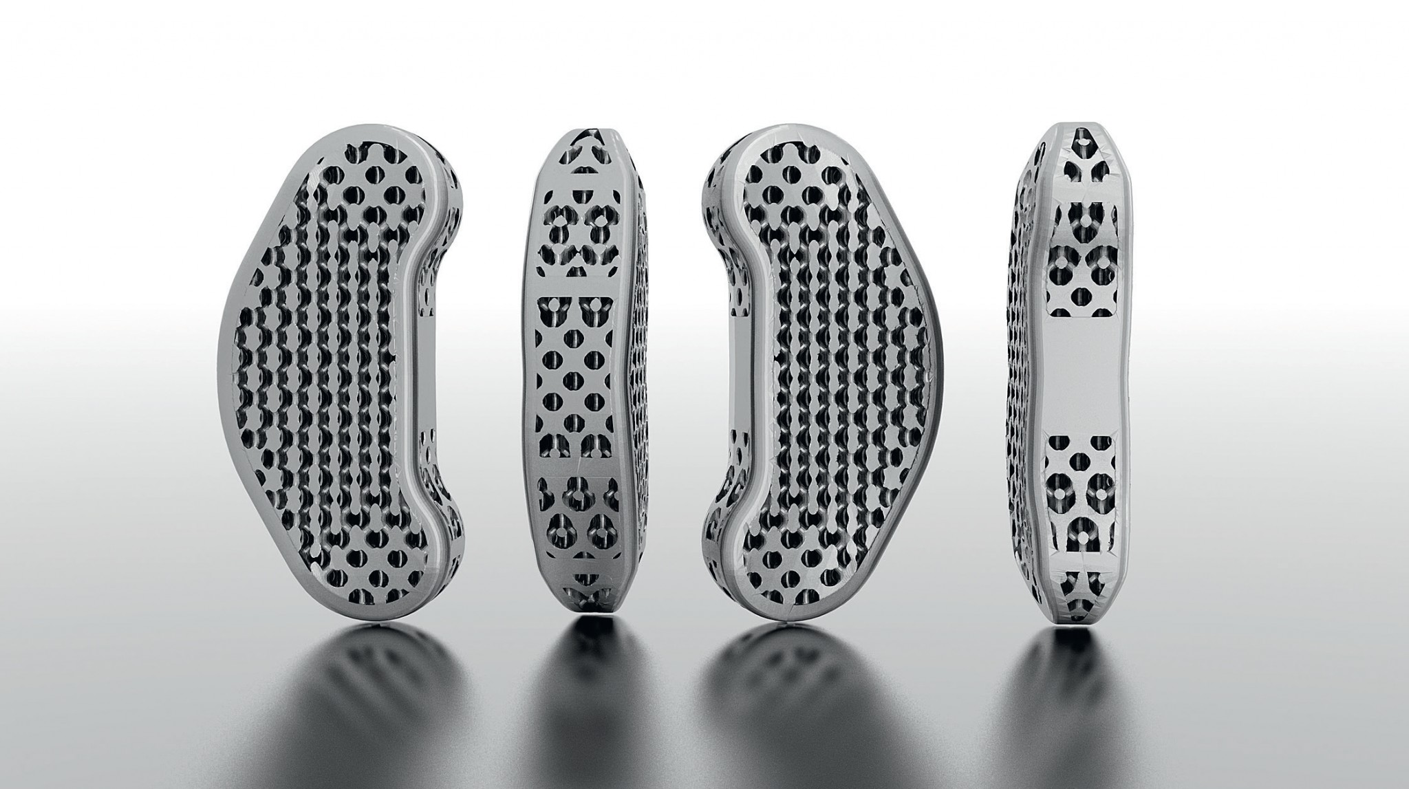Еще одно из интересных направлений – трабекулярные структуры. Трабекула – небольшой, часто микроскопический элемент в виде маленького пучка, стойки или стержня, который выполняет какую-то механическую функцию. Хорошей иллюстрацией является человеческое тело, напичканное такими структурами, например костной тканью. Трабекулы гораздо эффективнее монолитных структур, и киборги будущего, скорее всего, будут непохожи на своих кинематографических «монолитных» персонажей. Генеративный дизайн позволяет точно масштабировать и распределять крошечные поры по всем твердым материалам, а также придавать поверхности шероховатость, имитируя кости при создании медицинских имплантов. Гладкие монолитные привычные материалы не очень хорошо принимаются человеческим организмом, а вот трабекулярные структуры, напечатанные на 3D-принтере с учетом конкретной анатомии пациента, приживаются гораздо лучше.