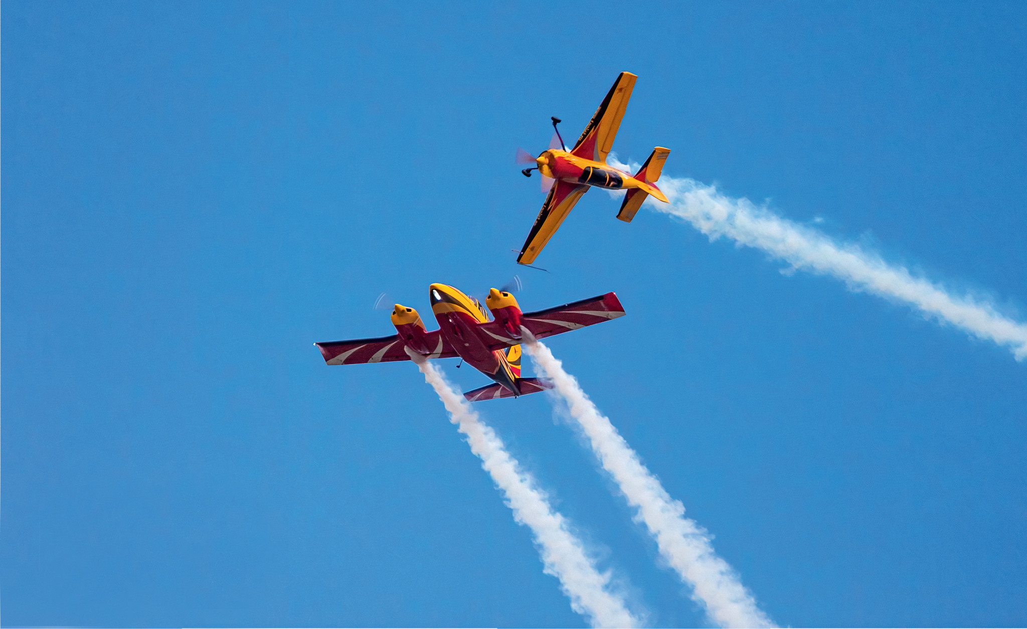 В России есть пилотажная группа, выступления которой не уступают по зрелищности авиашоу с участием «Стрижей» или «Русских витязей». Правда, пилоты группы «Первый полет», все титулованные спортсмены-авиаторы, сидят за штурвалами не «МИГов» и «СУ», а маленьких поршневых спортивных самолетов – ЯК-52, ЯК-54, ЯК-18. Но не только это отличает группу от прочих известных участников авиапраздников. Еще они освоили «печать по небу».
