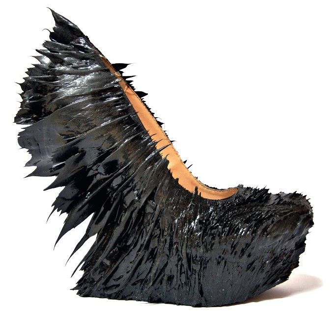 Голландский художник и дизайнер Джолан ван дер Виль делает вещи не из нашего мира. Они оттуда, где все то же самое, что и здесь, и только немного другое притяжение, а может, чуть больше воды. Это вполне гостеприимные планеты, пригодные для жизни, и там людям нужны обычные вещи – одежда, обувь, посуда, мебель. Просто выглядят они непривычно. Вот, например, как эти шипастые туфли, выращенные из магнитной резины.