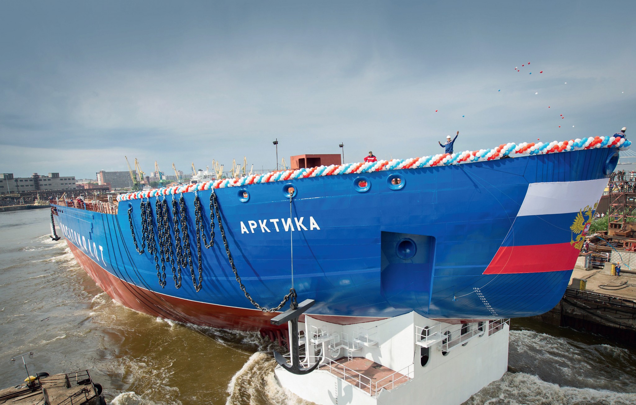 У стенки дока на Балтийском заводе они стоят рядом – головное судно «Арктика» и строящаяся по тому же проекту «Сибирь». «Сибирь» еще одета лесами, а вот готовность «Арктики» уже превышает 93%. Ходовая часть и энергоустановка, а также все наиболее важные для плавания части судна завершены, и оставшиеся проценты относятся в основном к элементам внутренней и чистовой отделки. С декабря 2019 года по февраль 2020-го ледокол проходил ходовые, а затем и ледовые испытания.