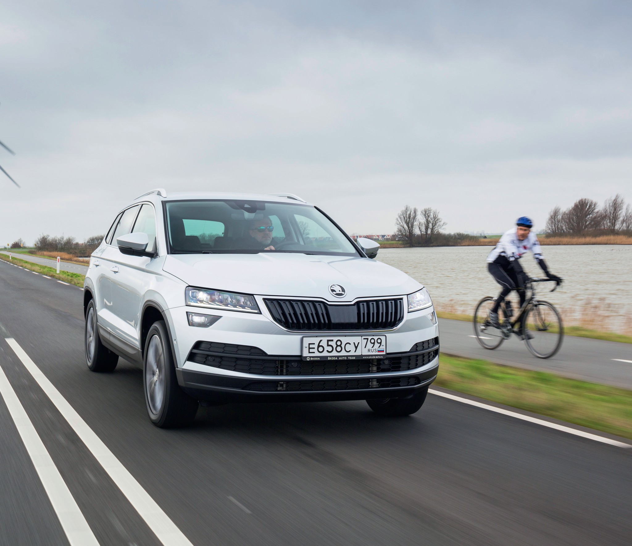 Новая модель из Чехии вроде бы пришла на замену Yeti, но обскакала в длину этот крохотный паркетник аж на 17 см, при этом 10 см не дотянув до размеров Volkswagen Tiguan. Это как кусочек пазла, не нарушивший общую композицию и при этом идеально вставший в свободную нишу. В итоге получился вполне знакомый по эргономике и дизайну автомобиль с большим 500-литровым багажником (426 л у версии с полноразмерной запаской), удобным механизмом складывания задних кресел, комфортными сиденьями, обшитыми кожзамом и замшей, довольно просторным салоном, в котором даже сзади достаточно места для пассажиров, хоть коленки и находятся в миллиметре от спинки переднего кресла. Но что обидно: под днищем Karoq всего 160 мм свободного пространства. То есть это дорожный просвет среднестатистического хетчбэка. Пока что мы говорим о переднеприводном автомобиле с 1,4-литровым двигателем TSI мощностью 150 л. с. Скоро появятся полноприводные версии с тем же мотором, но и у них