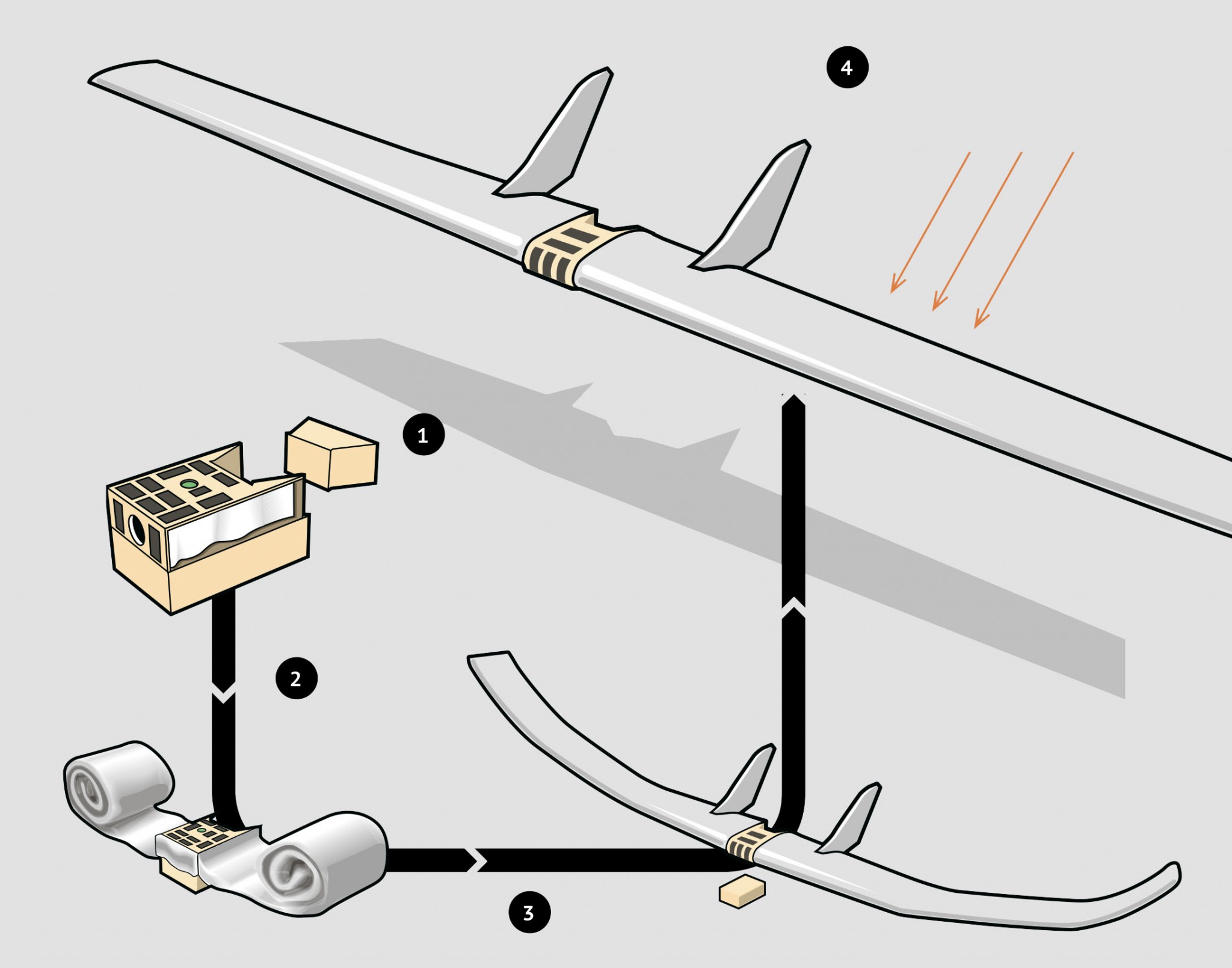 Для марсианской авиации есть хорошая новость: сила гравитации на Марсе сильно ниже, и земные 100 кг потянут там всего на 38. А вот новость плохая: атмосфера Марса чрезвычайно разреженна и давление у поверхности планеты составляет около одного процента от давления на поверхности Земли. Это примерно соответствует давлению земной атмосферы на высотах 30 000–35000 м над уровнем моря. Да, но ведь там самолеты летают! 30000 м – это практический потолок для высотного перехватчика МиГ-31. Как известно, подъемная сила крыла прямо пропорциональна его площади, а также скорости набегающего потока воздуха. МиГ-31 не падает с 30 км потому, что он преодолевает там воздушное пространство на сверхзвуковых скоростях. Но на Марсе на таких скоростях придется летать даже у самой поверхности. Обеспечить скорость просто: были проекты марсианских беспилотных самолетов, например ARES, которые должны были входить в атмосферу Красной планеты, затем сбрасывать теплозащитный кожух, тормозить с помощью парашюта, включать свой двигатель и нестись над поверхностью Марса, пока хватит топлива (того же гидразина). Такой полет мог бы продолжаться до часа. Но практически от всех этих идей отказались ввиду их… бесполезности. В самом деле, сейчас поверхность Марса исследуется с орбитальных модулей, и, несмотря на оснащенность супероптикой, детализация снимков оставляет желать лучшего (30 см на пиксель). Ровер, едущий по поверхности планеты, буквально роется в грунте, но ему не хватает обзора. Картографирование местности, разведка окружающего ландшафта роверу не под силу. Заполнить нишу между двумя типами исследовательских аппаратов как раз мог бы мини-зонд, летающий в атмосфере. Но для обстоятельного наблюдения за местностью требуется не носиться над ней на бешеных скоростях, а совершать плавные круги в небе. Может быть, летательный аппарат на Марсе смог бы летать медленнее, если недостаток скорости компенсировать большей площадью крыла? Это интересная идея