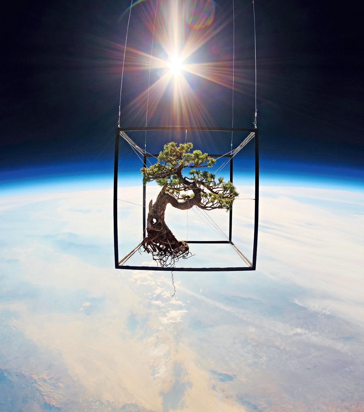 Скромные размеры растения не должны никого запутать: любимой карликовой сосне Азумы Макото уже около полувека, и за последнее время она успела окунуться в море в Японии, «посетить» заброшенную электростанцию в Бельгии, покрасоваться в центре заброшенного стадиона в Болгарии и даже побывать в стратосфере. Почти десять лет сосна-бонсай сопровождала художника в поездках по всему миру, став живым произведением искусства.