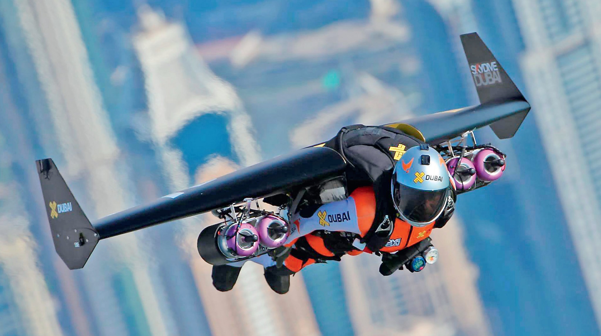 Винс Реффет сделал шаг с пирса, но не упал, а продолжил двигаться равномерно и прямолинейно в метре над водой, а затем пошел вверх по красивой дуге. За следующие восемь секунд он набрал первые сто метров, а на километр поднялся за полминуты. Под его крылом остались ребра искусственных островов Дубая и шпили его небоскребов, в том числе игла знаменитой Бурдж-Халифа. Продолжавшийся три минуты полет закончился спуском на парашюте, но перед тем, как дернуть кольцо, Реффет выполнил на высоте 1800 м две эффектные пилотажные фигуры – бочку и мертвую петлю.