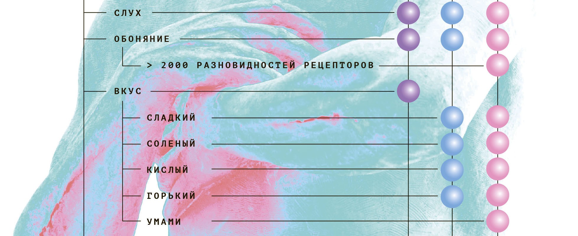 Классические пять чувств – список, который нас заставляют вызубрить еще в детстве, – перечислены еще Аристотелем («О душе») и к XXI веку выглядят безусловно наивными. Философ опирался на заметные и понятные сенсорные органы человеческого тела – глаза, уши, нос, язык, кожу – и сформулировал удобный, доступный даже детям набор: зрение, слух, обоняние, вкус, осязание. Однако и у ребенка могут возникнуть сомнения в том, что этим наши чувства и ограничиваются. Достаточно закрыть глаза, вытянуть руку и коснуться кончика носа пальцем – задача несложная, но как такое возможно без использования зрения?