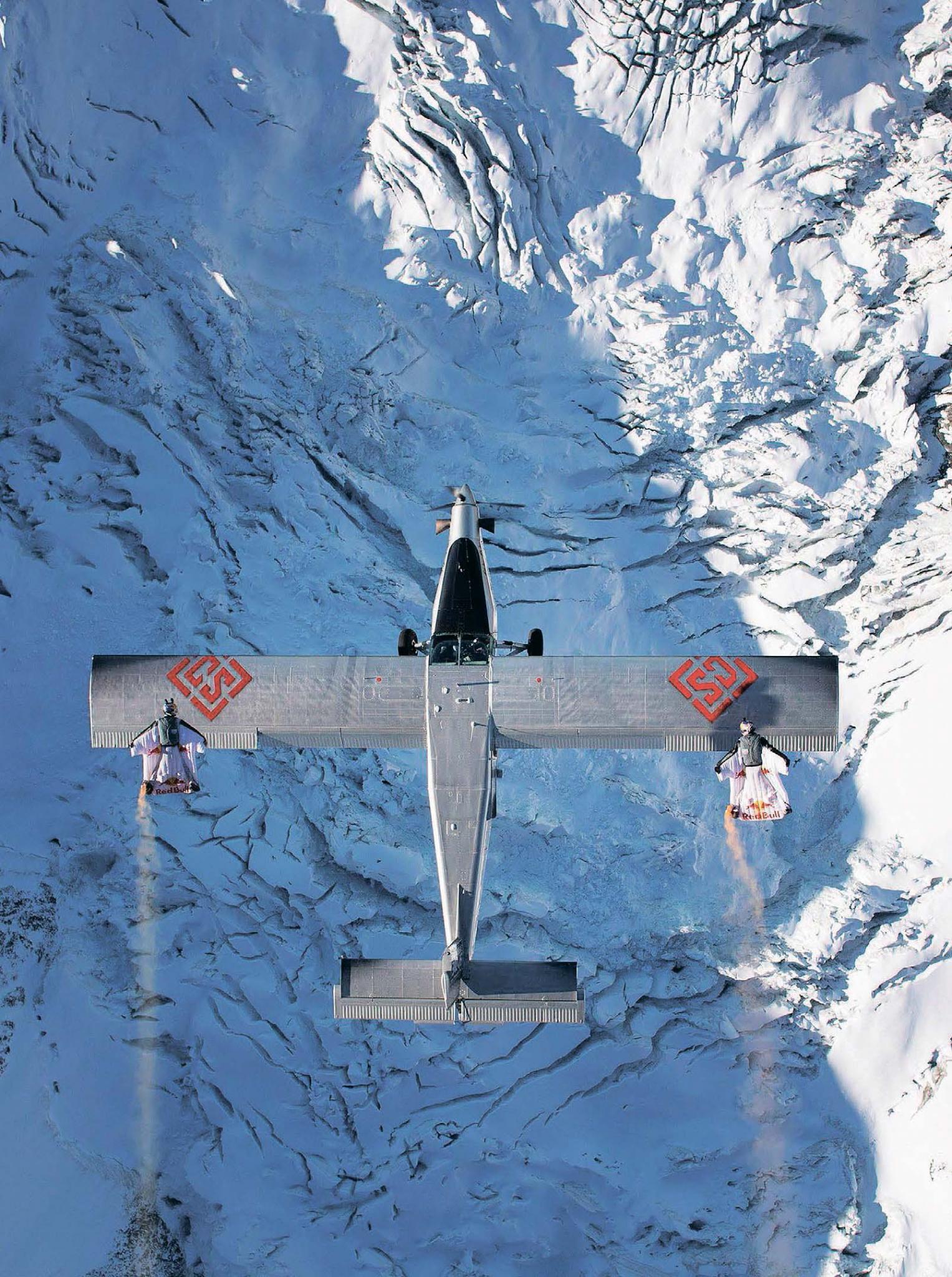 Раньше казалось, что такие трюки могут показывать только в голливудских боевиках, но однажды два француза изобразили это в реальности. В конце минувшего года 38-летний Фред Фуген и 33-летний Винс Реффет, называющие себя трюковым дуэтом Soul Flyers, что можно перевести как «летящие на крыльях души», спрыгнули с вершины легендарного швейцарского пика Юнгфрау, чтобы пролететь над горным ландшафтом и… запрыгнуть в открытую дверь находящегося в воздухе на высоте порядка 3,5 км сверхлегкого самолета Pilatus Porter. Разумеется, трюку, запечатленному в эффектном видео, предшествовали длительные тренировки, не все из которых завершались успешно. Реффе рассказывал, что во время одной из попыток спикировать внутрь самолета получил сильный удар в ребра и был отброшен от фюзеляжа. Сорвиголову спас парашют.