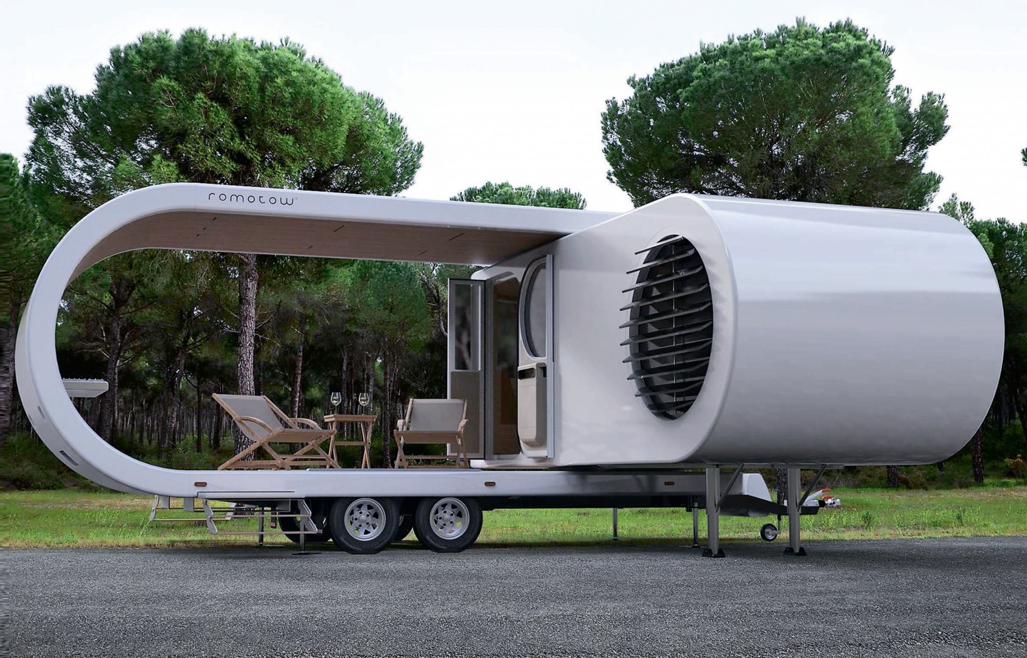 Как у нас их только ни называли – и жилые прицепы, и дачи на колесах, и кемперы, но в нашем климате они как-то не прижились. Зато в теплых солнечных странах прицепной дом дает возможность с комфортом проводить время в путешествии, не зависеть от отелей и не нести дополнительных расходов. Конструкторы из новозеландской компании W2 решили пойти дальше и повысить уровень комфорта радикально. Представленный ими еще в 2012 году проект Romotow (от английского Room to move, «комната на прицепе») являл собой кемпер-трансформер. Во время движения он мало чем отличается от стандартных собратьев, однако на стоянке Romotow раскладывается на две части – собственно жилище и просторную полуоткрытую веранду, где в погожий день можно и посидеть, и поесть, и поспать. Целых два пространства вместо одного! Сейчас W2 перешла от стадии проектирования к строительству первых прототипов.