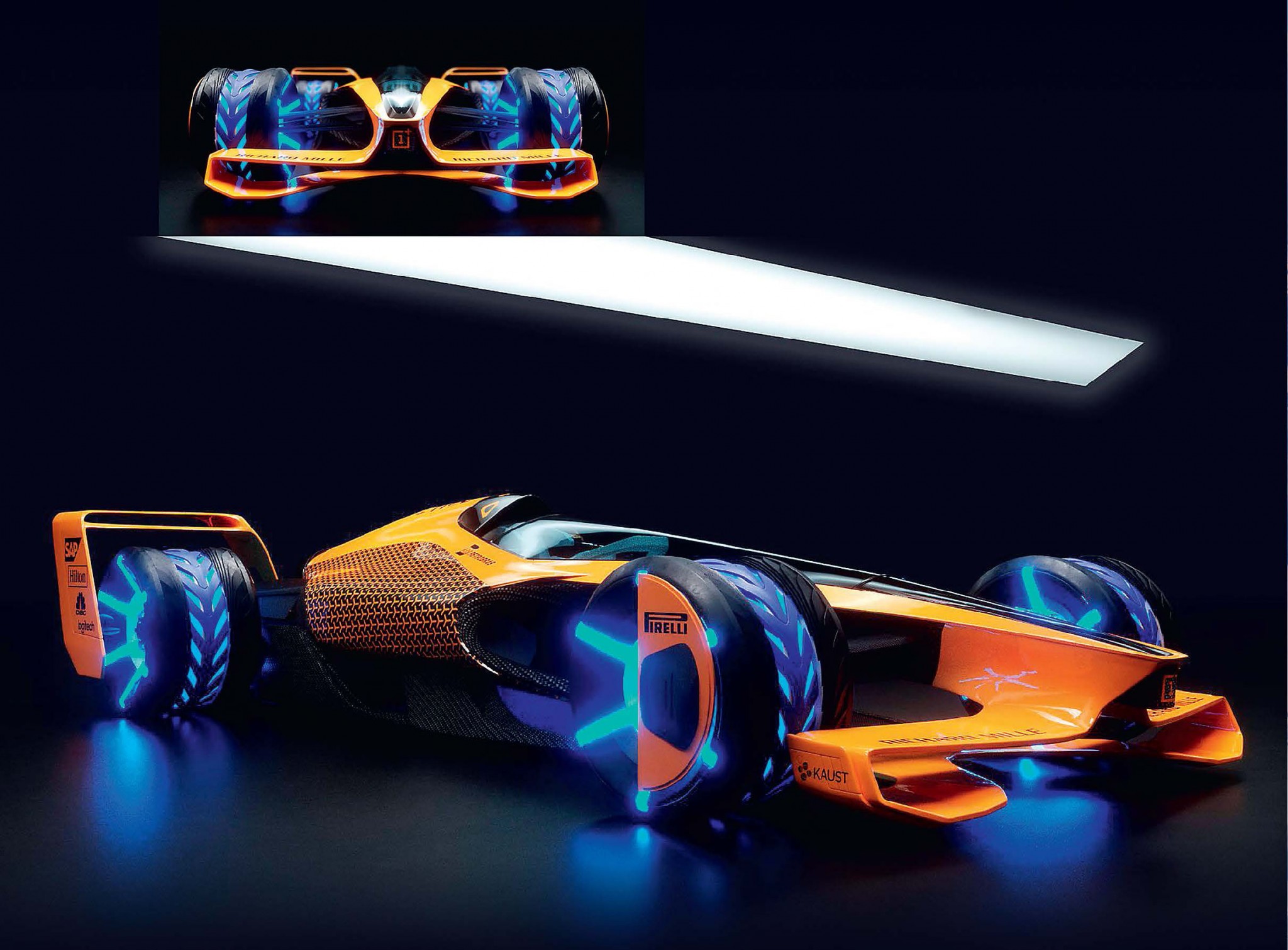 В 2050 году гонкам «Формула-1» исполнится сто лет. К юбилею надо начинать готовиться прямо сейчас, решили в Applied Technologies, подразделении компании McLaren. Посоветовавшись с техническими специалистами, гонщиками и фанатами соревнований, британские дизайнеры и инженеры нарисовали в максимально реалистичной манере концепт «формульного» болида 2050 года. В комментариях представители McLaren рассказали об основных отличиях машины середины столетия от нынешних. Во-первых, это, конечно, будет электромобиль. Правда, заряжать его станут не из розетки, а с помощью индукции, от катушек, расположенных прямо под поверхностью трассы. Во-вторых, будет снят запрет на активную аэродинамику, и автомобиль сможет изменять форму кузова в процессе гонок. В-третьих, большая роль будет отведена помощнику водителя в виде искусственного интеллекта, с которым гонщик будет связан с помощью нейромашинного интерфейса.