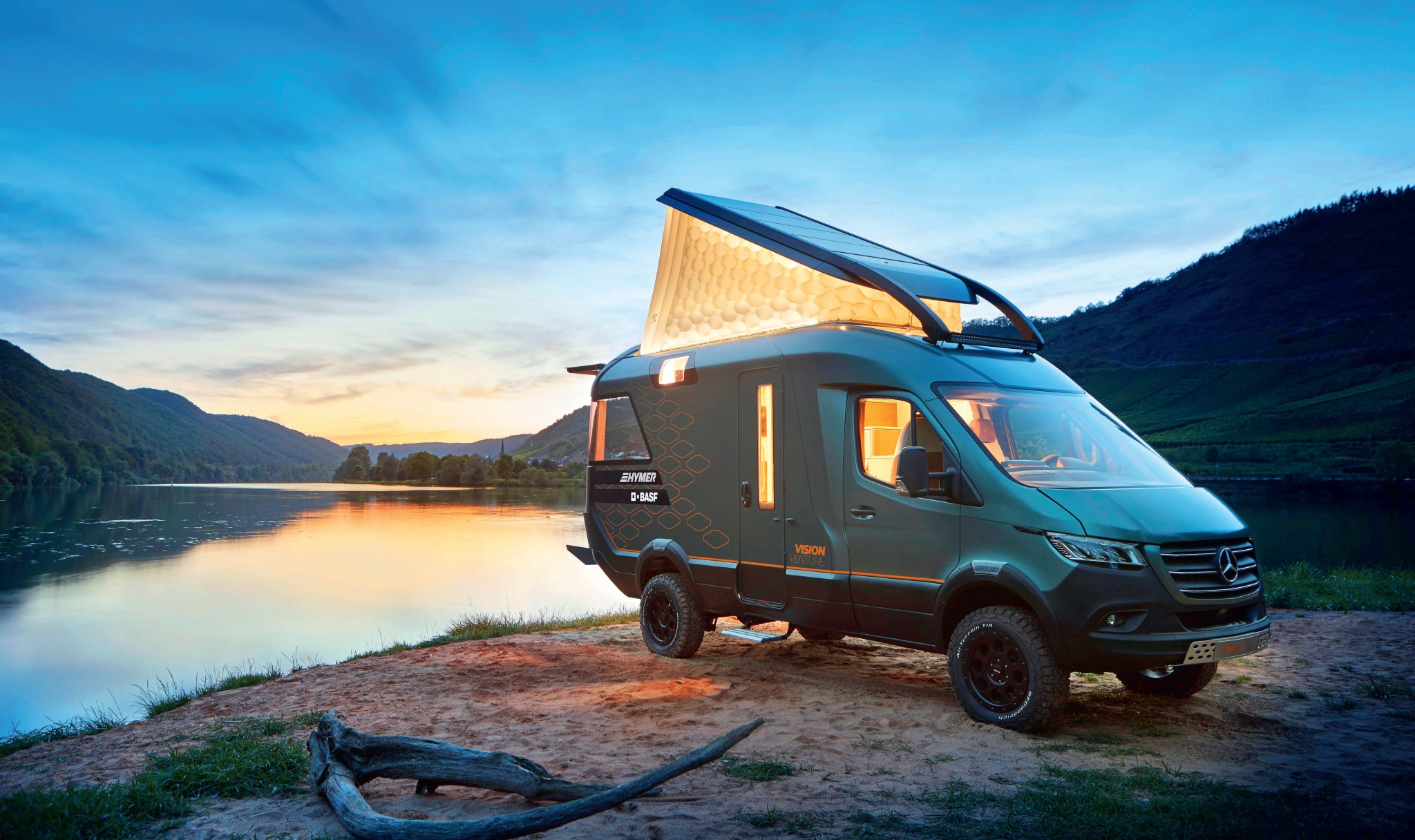 Концепт дома на колесах VisionVenture, представленный специализирующейся на туристическом транспорте немецкой компанией Hymer, стал главным шоу-стоппером выставки Caravan Salon в Дюссельдорфе. VisionVenture не рассчитан на большую семью – это роскошный уютный домик для путешествующей пары. Основной объем микроавтобуса, построенного на базе Mercedes Sprinter, занимают гостиная с удобными диванчиками, кухня и ванная. А где же спальня? А помещение спальни появляется по необходимости: ее образуют поднятый верхний люк и боковые надувные стены. Если на улице прохладно, в стены можно закачать теплый воздух, если жарко – прохладный.
