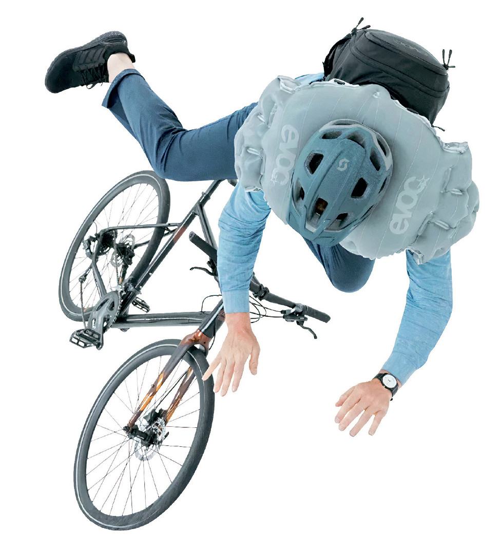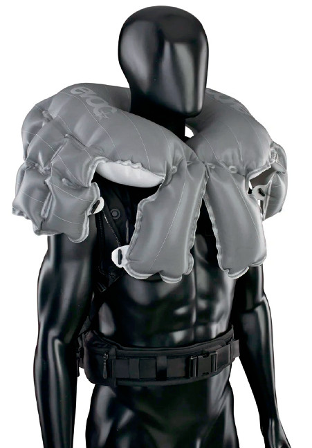 В мирное время велосипедный рюкзак EVOC Commute Air Pro 18’s выглядит вполне обычно, в нем есть все нужные карманы, включая отделения для ноутбука, очков и смартфона. Но если случится неприятность и падения с байка не миновать, понадобится всего 200 мс, чтобы рюкзак превратился в подушку безопасности, которая защитит от удара спину, шею, плечи и грудь. Специальные емкости заполнятся углекислым газом, который до поры до времени хранится под давлением в баллончике. Да, но откуда рюкзак «узнает»,