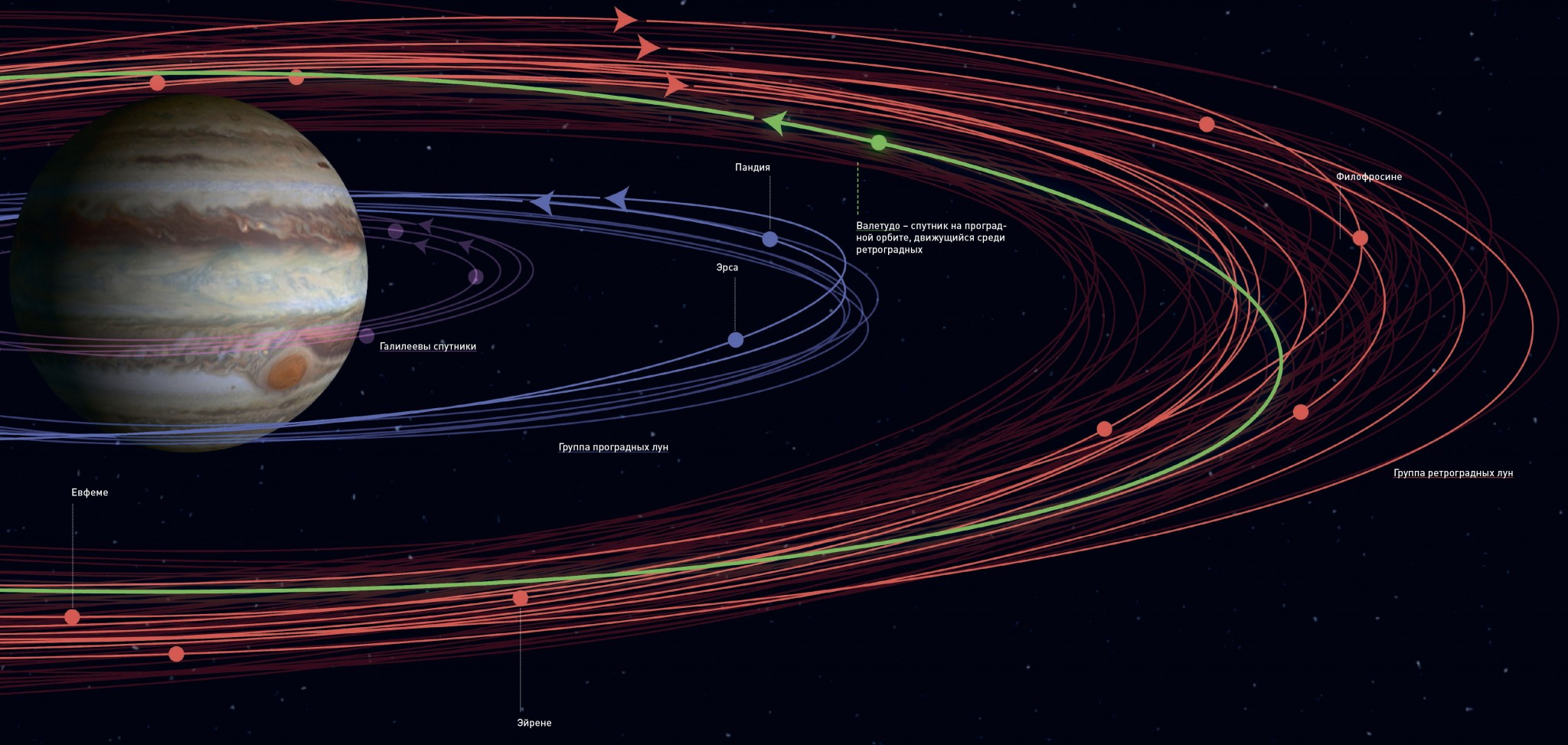 Не так давно Институт Карнеги провел в twitter конкурс #NameJupitersMoons, участники которого присылали названия для пяти недавно открытых лун Юпитера. Лучшие идеи были представлены в Международный астрономический союз. В честь дочерей Зевса и Селены, богини росы Эрсы и полной Луны Пандии, названы новые спутники группы Гималии. Считается, что все ее представители происходят от общего объекта, разрушенного столкновением или гравитацией Юпитера. Они сохранили близкие орбиты, и их названия заканчиваются на «а», указывая на проградное вращение – в ту же сторону, что и сама планета. Имена спутников на ретроградных орбитах должны заканчиваться на «е», как у еще трех лун, получивших новые названия. Филофросине, Евфеме и Эйрене – в честь Филофросины, духа гостеприимства и дружелюбия; Евфемы, духа восхвалений и пожеланий удачи; Эйрены, духа миролюбия.