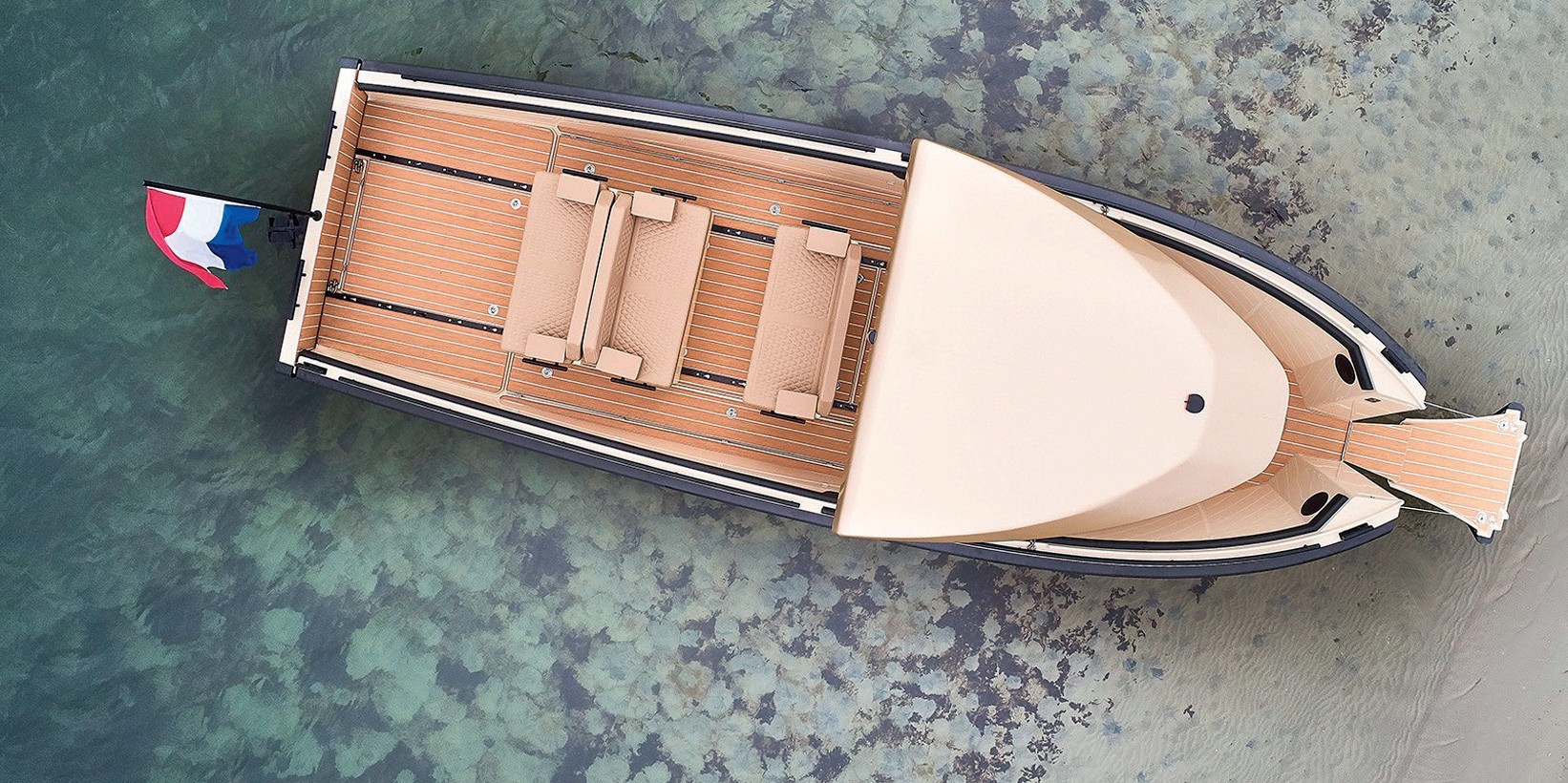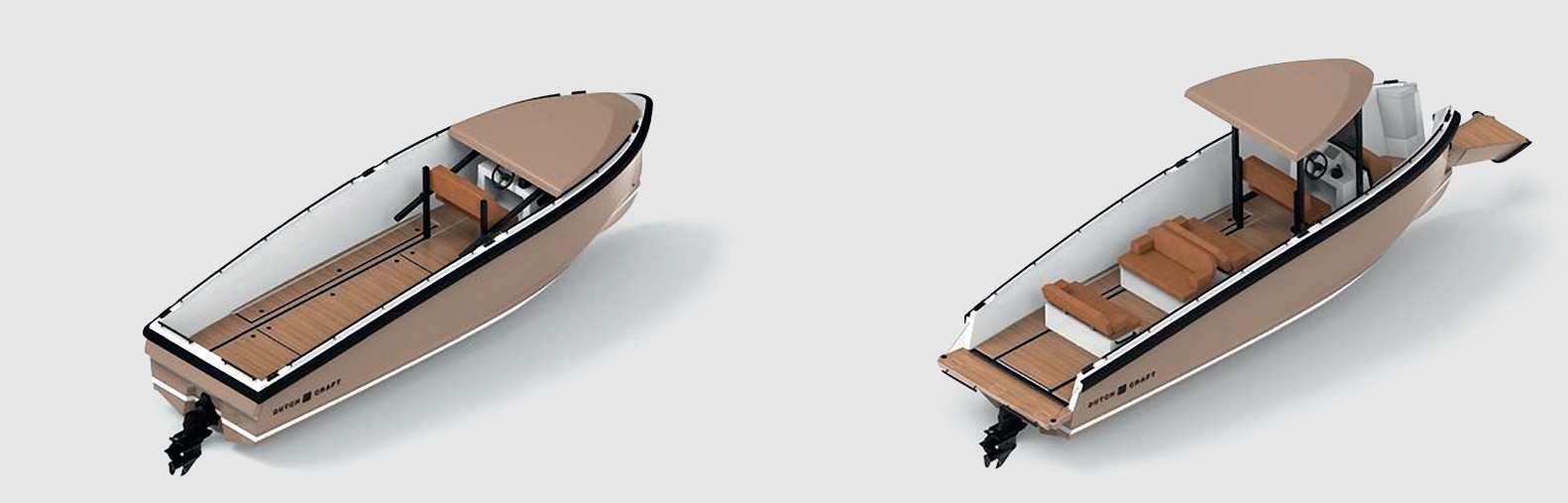 8-метровый баркас DC25 от судостроителей нидерландской компании DutchCraft – универсальное переконфигурируемое судно, спроектированное по модульной схеме. Пара металлических направляющих, проходящих вдоль всей палубы, позволяет быстро «настраивать» конфигурацию и функциональность судна, устанавливая и перемещая сменные компоненты, будь то инструментарий или мебель. Легким движением руки DC25 превращается в спасательный или рыболовный катер, в место для семейного отдыха или грузовую рабочую лошадку для тех, кто работает в море. В любой компоновке DC25 останется бесшумным: поворотно-откидная колонка оснащена электродвигателем на 100 кВт (134 л.с.). Легкий углепластиковый корпус и бортовые аккумуляторы емкостью до 134 кВт∙ч позволяют развивать максимальную скорость до 32 узлов (59 км/ч) и удерживать ее до 75 минут либо же двигаться на крейсерских 6 узлах (11 км/ч) в течение нескольких часов.