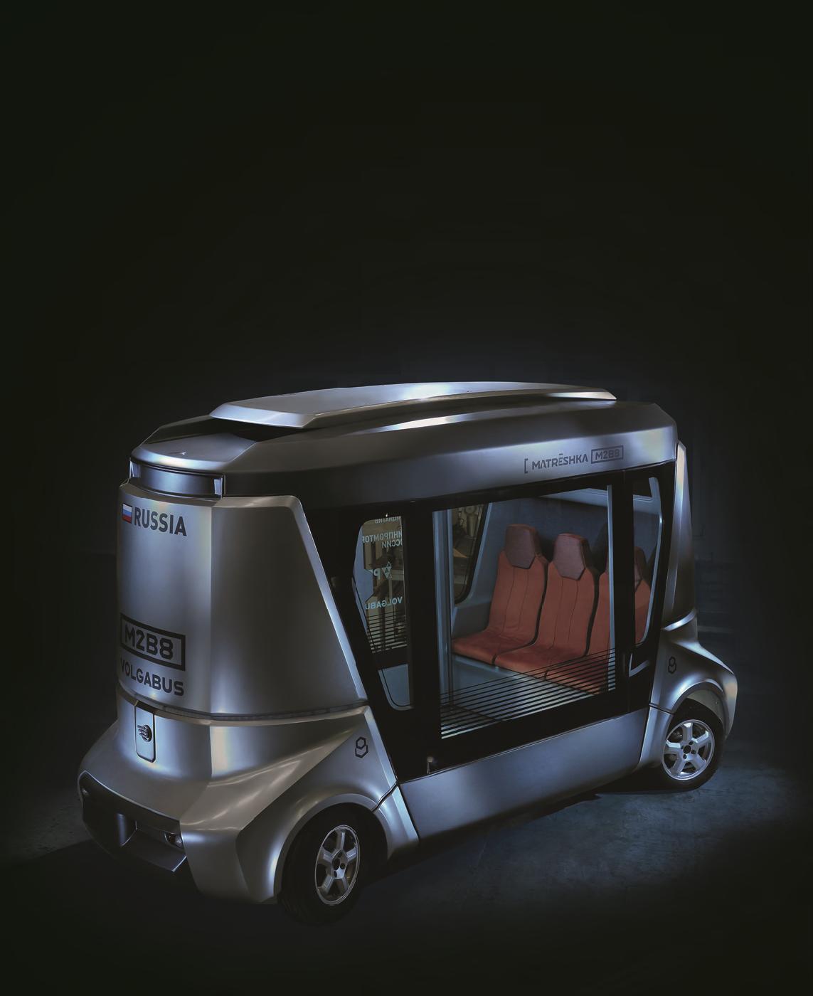 В конце октября посетители форума «Открытые инновации» в Сколково могли видеть первый российский беспилотный автобус «MatrЁshka», который разработали и построили в компании «Бакулин Моторс Групп», производящей автобусы под маркой Volgabus. Эта компания – пионер в области создания новых современных моделей. 70% новинок за последние 15 лет вышли именно из цехов «Волгабаса».