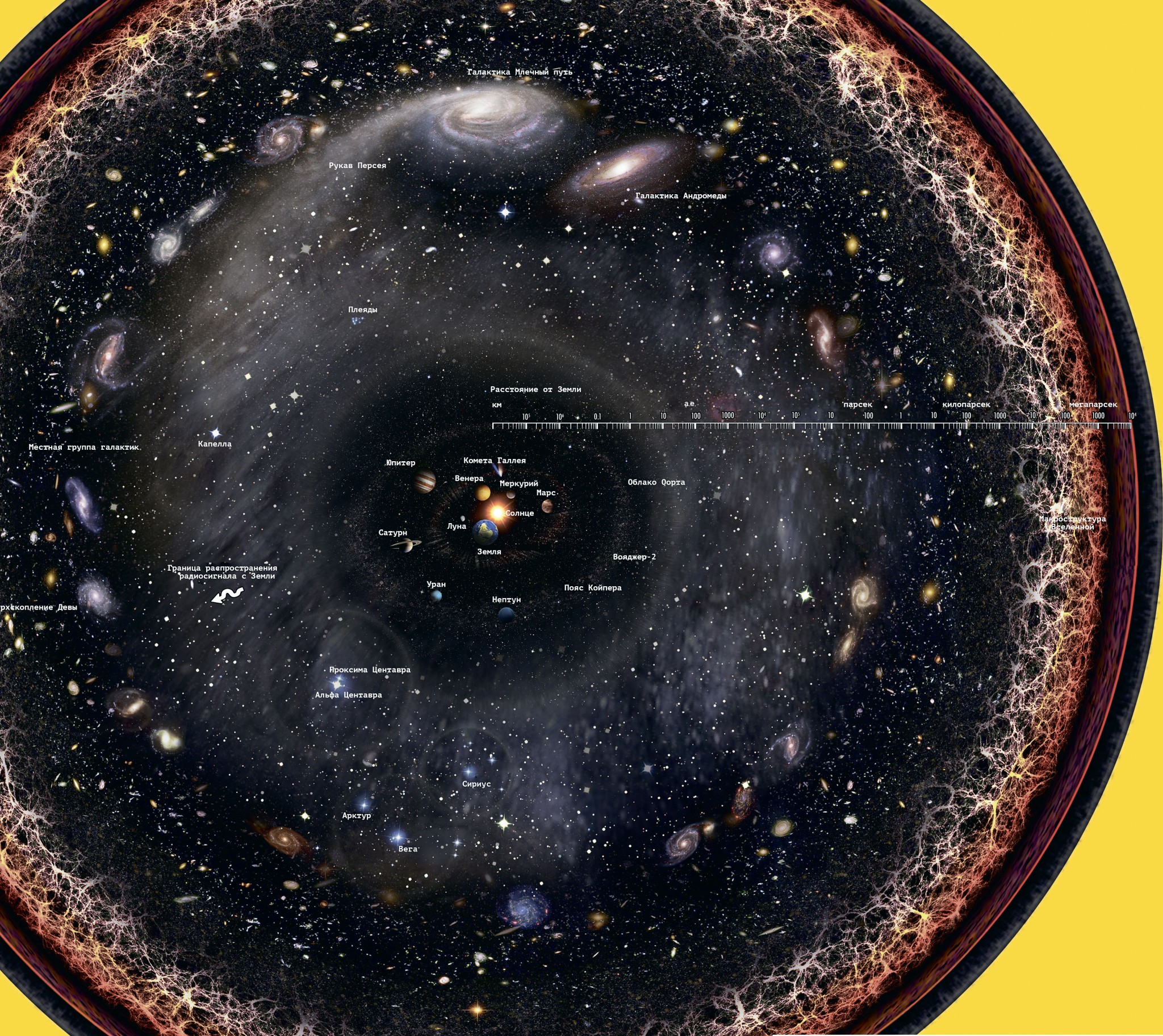 Астрономам в древности и вплоть до начала XX века небо казалось плоским: они умели определять расстояние только до самых близких астрономических объектов – Солнца, Луны, планет Солнечной системы и их крупных спутников; все остальное было недостижимо далеко – так далеко, что рассуждать о том, что ближе, а что дальше, не имело смысла. Только в начале XX века дальний космос начал приобретать объем: появлялись новые способы измерения расстояний до далеких звезд – и мы узнали, что кроме нашей галактики существует еще бессчетное множество звездных скоплений. А к концу века человечество обнаружило, что его родная галактика кружится в одном из просветов между нитями звездной «губки» – в месте, очень пустом даже по космическим меркам.