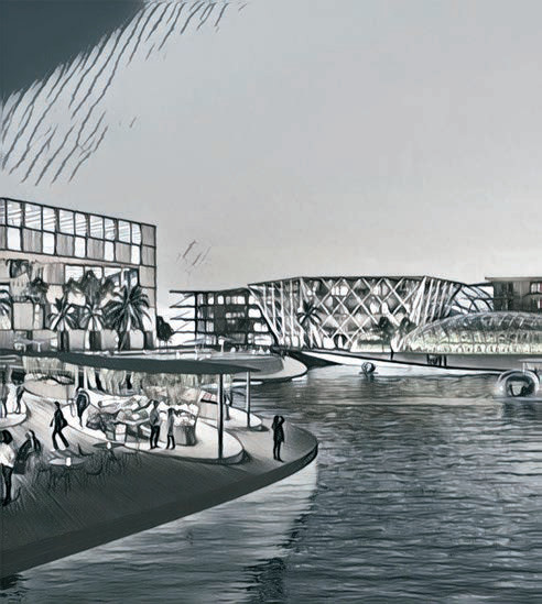 The city’s master plan states that “a water, air and land-based autonomous public transportation grid is intended to create a carfree environment, where streets serve as a safe and welcoming environment for cyclists and pedestrians.”