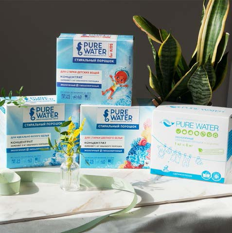 Бытовая нехимия PureWater более чем на 97% состоит из компонентов натурального происхождения, все средства экологичны и разлагаются в окружающей среде >78% за 28 дней. Бытовая нехимия PureWater не содержит компонентов из пальмового масла — мы стремимся не нарушать биоразнообразие на планете. В нашем ассортименте есть средства как для стирки, так и для полного поддержания чистоты в доме. За счет своего состава средства безопасны для септиков и идеально подходят для загородных домов.