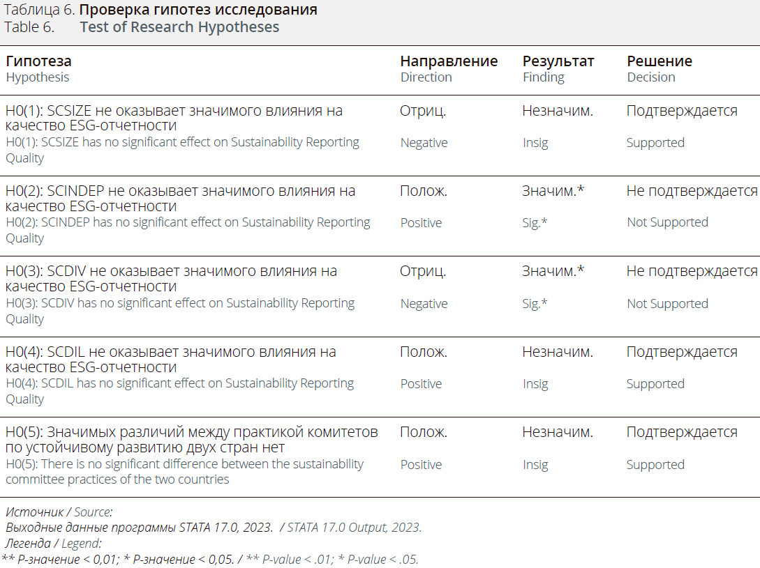 Кроме того, априорное ожидание исследования состоит в том, что численность, независимость, разнообразие и активность работы комитета по устойчивому развитию положительно влияют на качество ESG-отчетности банков, попавших в выборку. Это выражается в том, что SCSIZE > 0; SCINDEP > 0; SCDIV > 0 и SCDIL > 0.