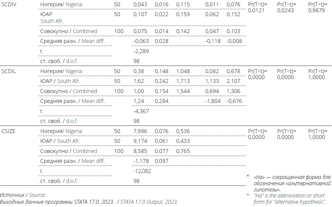 Кроме того, в исследовании был проведен анализ раскрытия информации об устойчивом развитии в банках Нигерии и ЮАР с помощью независимого t-теста/двухвыборочного t-теста. Результаты показали, что южноафриканские банки имеют более высокий уровень раскрытия информации, чем нигерийские, поэтому гипотеза H0(5) не может быть подтверждена.