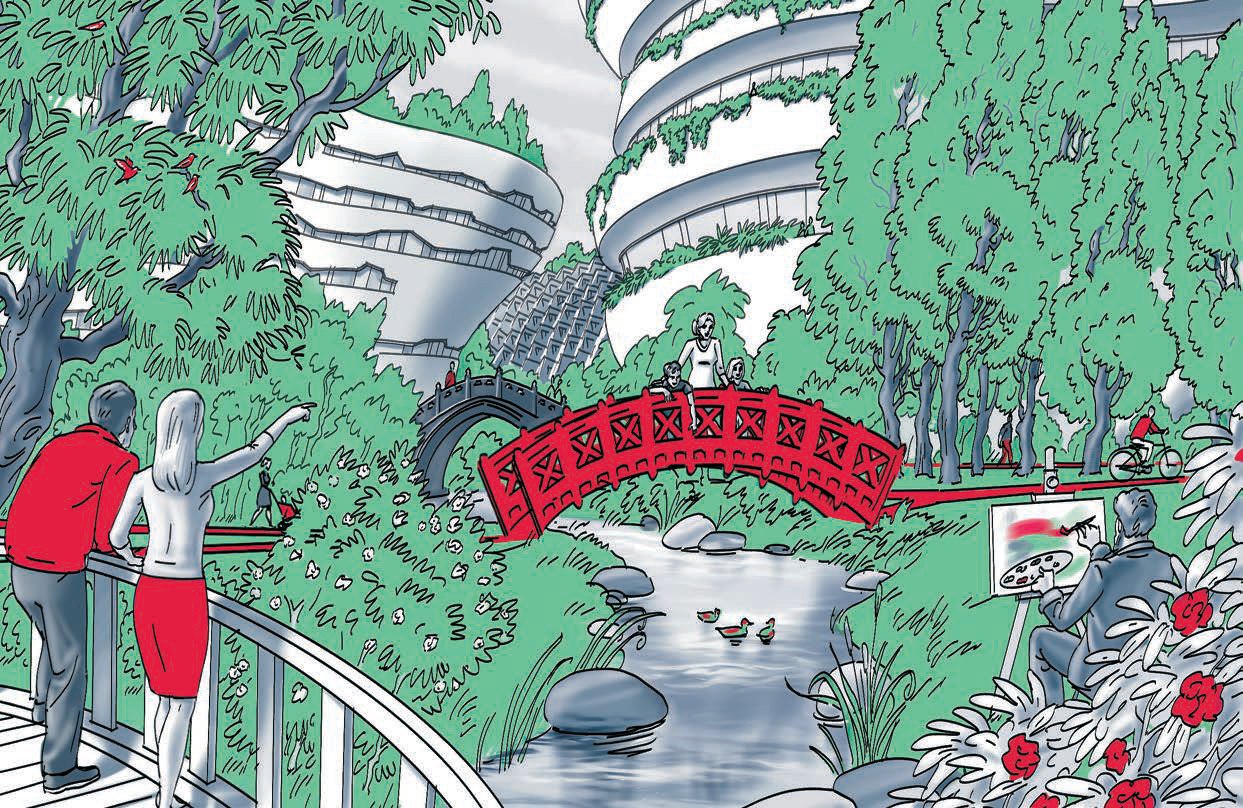 Ма Яньсун, основатель самого известного архитектурного бюро Китая MAD Architects, профессор Пекинского университета гражданского строительства и архитектуры: «Современные города слишком сильно завязаны на эффективность и власть капитала. Все разговоры — об экологии, загрязнении окружающей среды и дорожном движении. Все сталкиваются с этими проблемами, но это не значит, что, решив их, вы автоматически получите «здоровый город». Вы и я физически здоровы, но здоровье тела еще не означает здоровье духа. <…> Мы говорим об экологии, энергосбережении и устойчивом развитии, но, на мой взгляд, все снова сводится к технологиям. Можно установить более эффективные кондиционеры, стеклопакеты, солнечные панели — но это же не значит, что те, кто работают в этом здании, захотят остаться в нем навсегда! Они по-прежнему каждые выходные будут забывать о работе и уезжать в деревню, чтобы вновь почувствовать единение с природой. Это основа, фундаментальная причина, по которой мы сейчас начинаем говорить о природе. Если мы хотим быть ближе к природе, почему бы не понизить или не повысить температуру в комнате или в офисе на пару градусов?»