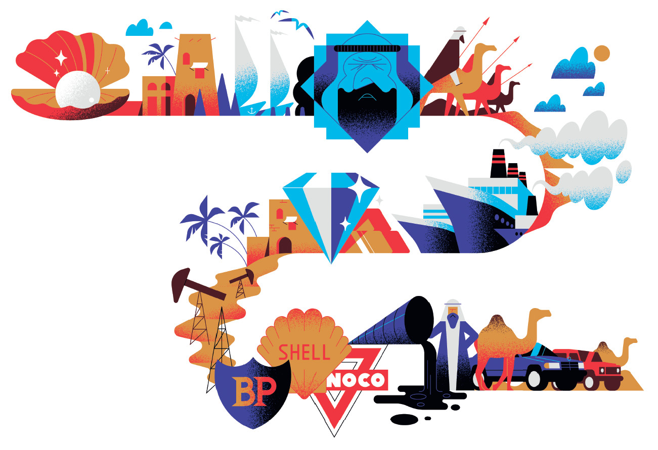 Еще в XIX веке Дубай зарабатывал на добыче жемчуга. После того как местную индустрию уничтожила технология искусственного выращивания жемчуга на фермах и в 1920-х добила Великая депрессия, Дубай сумел перестроиться и стал крупным портом. Бывшие торговцы жемчугом превратились в логистов и администраторов. Значительную роль в этом сыграл шейх Саид бен Мактум, сын основателя династии и дед нынешнего шейха, – он вовремя оценил плюсы беспошлинной торговли и создал в Дубае нечто вроде свободной экономической зоны, процветавшей за счет торговли через Залив с Персией. Сын шейха Саида, Рашид, продолжил вкладываться в инфраструктуру порта: он за большие деньги, взятые в кредит под первые нефтяные доходы, начал углублять бухту Хор-Дубай. Проект удался, в бухте смогли швартоваться суда любого размера. В сочетании с беспошлинной торговлей, британской юрисдикцией и удачным географическим положением гавань быстро превратила Дубай в крупный реэкспортный пункт международной торговли, в частности через Дубай везли золото и алмазы.