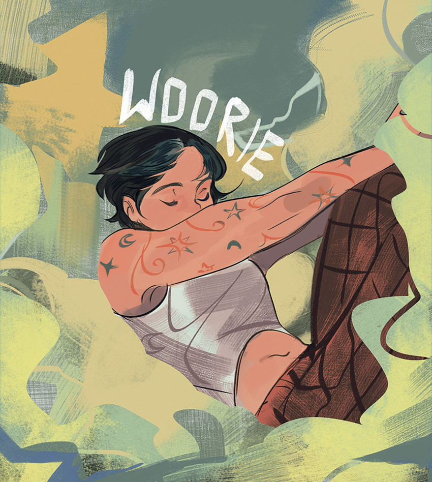 Woorie начала создавать свой хит «Капучино с маршмэллоу», когда ей было 16. Это история о школьниках в духе сериалов Netflix или корейских дорам: друзья гуляют, мечтают, ходят в кино и к психологу, веселятся, узнают мир и самих себя, влюбляются и грустят. Woorie освоила платформы для цифрового размещения сериальных комиксов – корейский Webtoon Canvas и американский Tapas – и приобрела там популярность: более 250 тысяч прочтений во всем мире. Уже будучи известной за границей, она выпустила два тома комиксов в издательстве Popcorn Books. Woorie всего 19 лет, она быстро работает и, освоив принципы азиатского комикса, идет дальше, раздумывая над будущими проектами. Специально для «Правил жизни» Woorie нарисовала комикс «Круговорот комплиментов