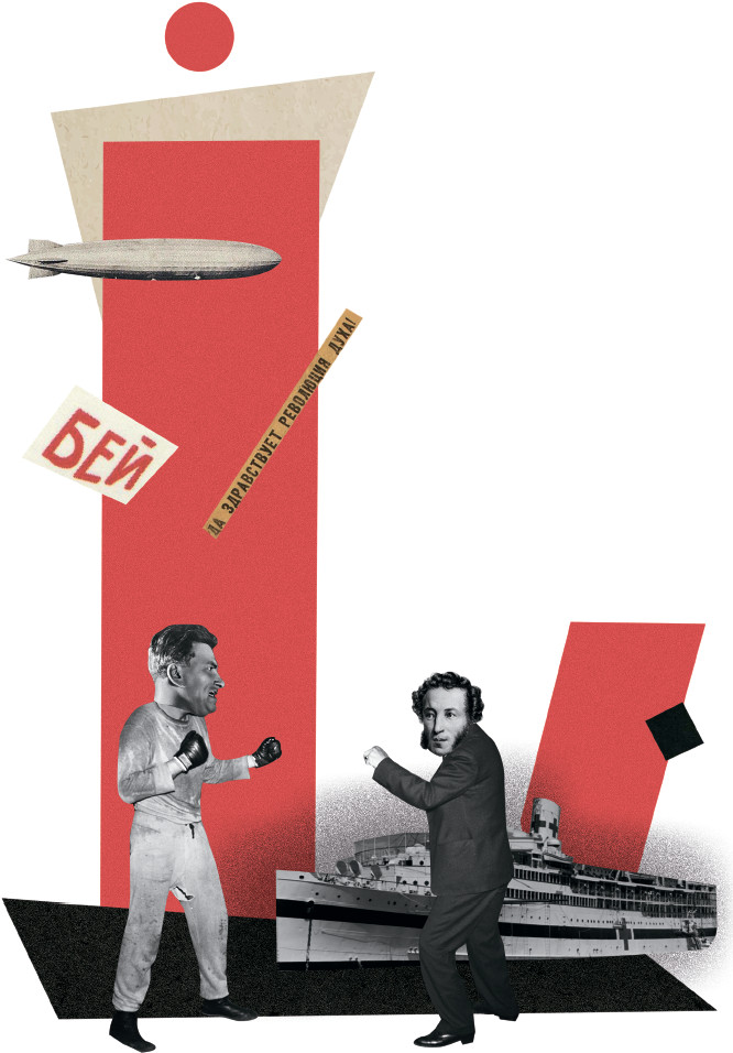 Знаменитый манифест «Пощечина общественному вкусу» вошел в историю хотя бы тем, что ввел в русский язык расхожее выражение «сбросить с парохода современности». С корабля современности сбрасывали Пушкина, Достоевского и Толстого, а занимались этим Маяковский, Хлебников, Крученых, братья Бурлюки и Кандинский; причем для Маяковского это был дебют в печати – и какой дебют! «Кто же, доверчивый, обратит последнюю любовь к парфюмерному блуду Бальмонта? Кто же, трусливый, устрашится стащить бумажные латы с черного фрака воина Брюсова? Вымойте ваши руки, прикасавшиеся к грязной слизи книг, написанных этими бесчисленными Леонидами Андреевыми. Всем этим Максимам Горьким, Куприным, Блокам, Сологубам, Аверченко, Черным, Кузминым, Буниным и проч. и проч. – нужна лишь дача на реке. Такую награду дает судьба портным».
