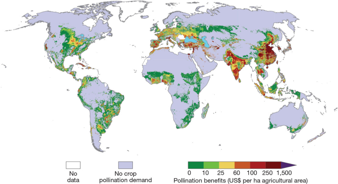 В опылении нуждаются также кормовые и технические культуры, например, люцерна (одна из главных кормовых культур для скота) или хлопок (основной источник волокон для текстильной промышленности). Даже если растения способны к самоопылению, с пчелами опыление эффективнее. При участии пчел такие растения образуют больше плодов, а сами плоды получаются крупнее и качественнее. Достаточное количество опылителей способно повышать урожайность в среднем на 24 процента. Экономический вклад опылителей в мировую экономику на 2005 год оценивался в 153 миллиарда евро, что составляет почти 10 процентов всего сельского хозяйства.