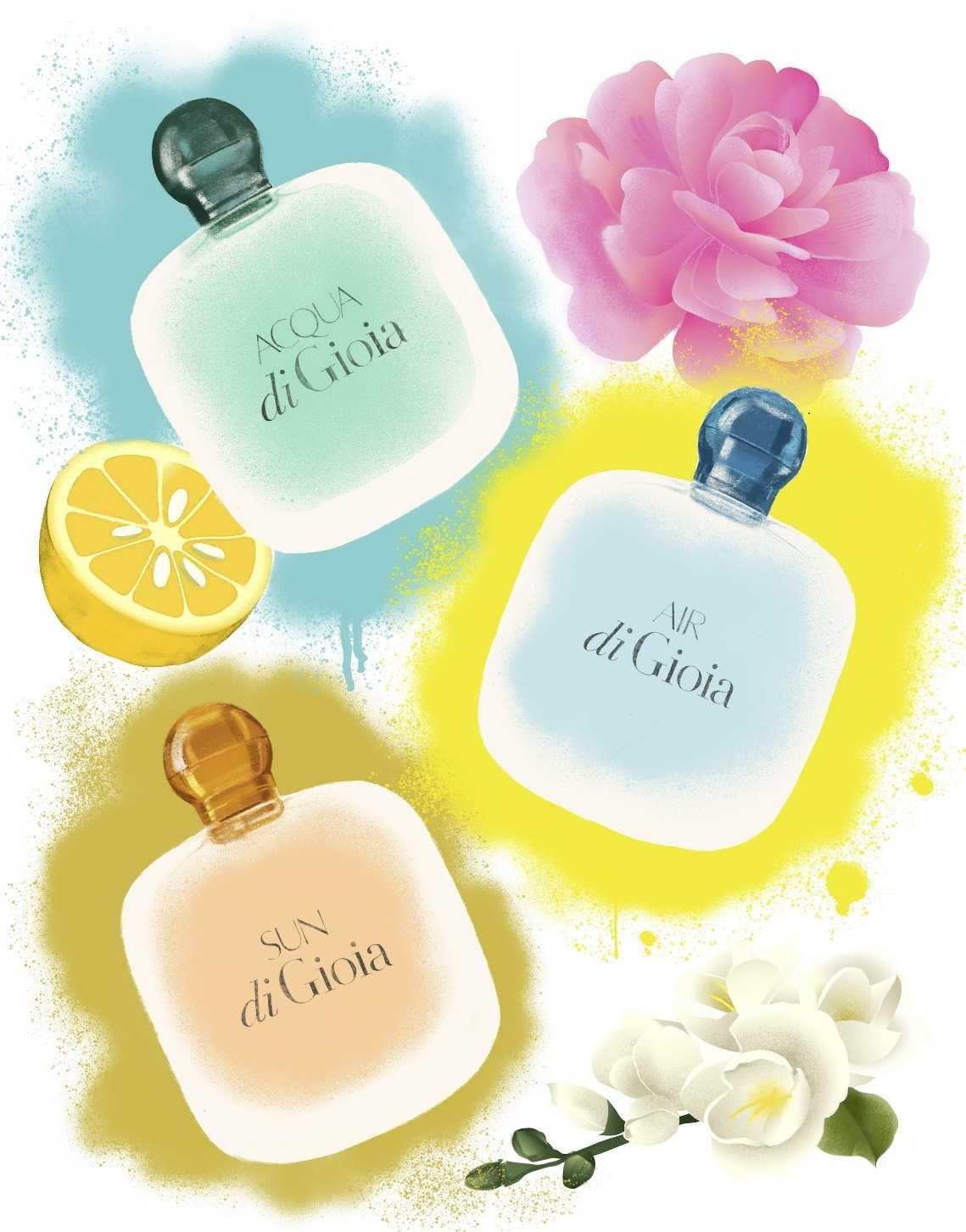 Аромат Acqua di Gioia – новое воплощение хита девяностых, женского парфюма Aqua Di Gio, о котором мало кто помнит. Но шесть лет назад Джорджо Армани проводил каникулы на тропических островах, где сочетание морских брызг и летнего дождя вдохновило его на создание «водного» аромата Acqua di Gioia, созвучного иконическому Gio. Тогда же у этого нового парфюма в свою очередь появились «потомки» – Sun di Gioia и Air di Gioia, протестировать которые вызвалась директор по рекламе Psychologies Ирина Василенко, давняя поклонница Acqua di Gioia.