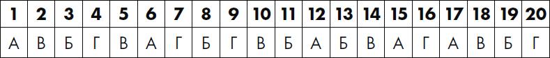 Обведите буквы, соответствующие отмеченным утверждениям. Подсчитайте количество А, Б, В и Г и посмотрите свой профиль.