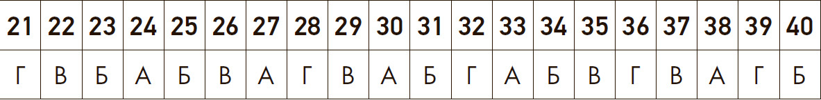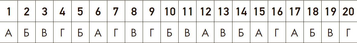Для каждого отмеченного утверждения обведите кружком соответствующую букву в таблице ниже. Затем подсчитайте количество ответов A, Б, В и Г и на следующих страницах прочитайте, какую роль играет в вашей жизни секс.