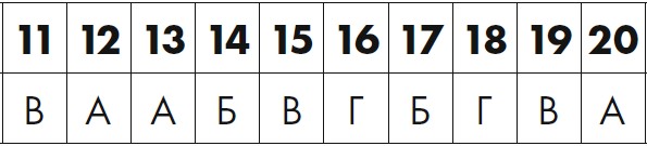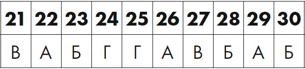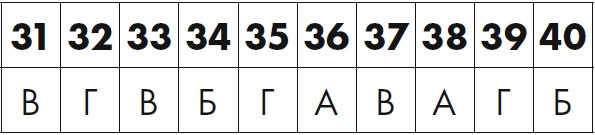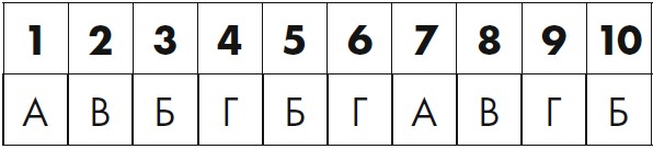 Для каждого утверждения, которое вы отметили, обведите соответствующий номер в таблице внизу. Затем подсчитайте общее количество A, Б, В и Г и найдите источник своих тревог на следующих страницах.