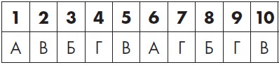 Для каждого отмеченного выражения обведите свой ответ в таблице. Затем посчитайте общее число ответов для A, Б, В, Г и узнайте свой профиль на следующей странице. Если ответы распределятся поровну, перечитайте и попробуйте сделать выбор заново.