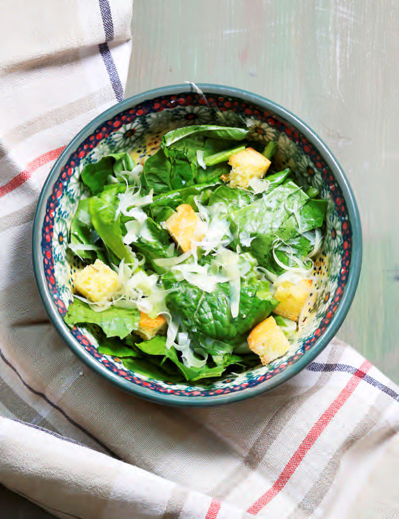 Дело было в приграничном мексиканском городе Тихуане во времена Великой депрессии, в ресторане итальянца Чезаре (Цезаря) Кардини. Сюда, сбегая от сухого закона, приезжали гости из США. Одна компания заявилась совсем поздно, когда провизии почти не осталось. «Aut Caesar, aut nihil» («Пан или пропал») – подумал Чезаре и приготовил закуску из имевшихся продуктов: подсушенного хлеба с оливковым маслом и чесноком, вустерского соуса и пармезана. Главной была заправка – подваренное в течение одной минуты яйцо, – глянцевый, обволакивающий соус для листьев зеленого салата. Вскоре «Цезарь» cтал популярен и даже был признан в Америке «рецептом столетия», и я предлагаю попробовать оригинал и убедиться, что не зря.