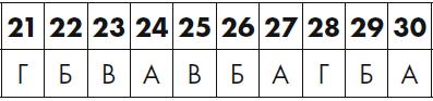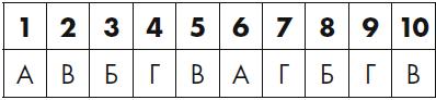 Для каждого отмеченного утверждения обведите номер ответа в таблице ниже. Затем посчитайте общий балл для A, Б, В, Г. Посмотрите свой профиль на следующих страницах.
