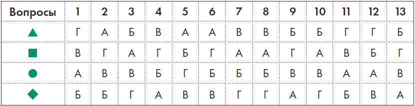 Обведите кружочком ваш ответ на каждый вопрос. Затем подсчитайте общее количество A, B, В и Г и прочитайте ваш профиль на следующих страницах.