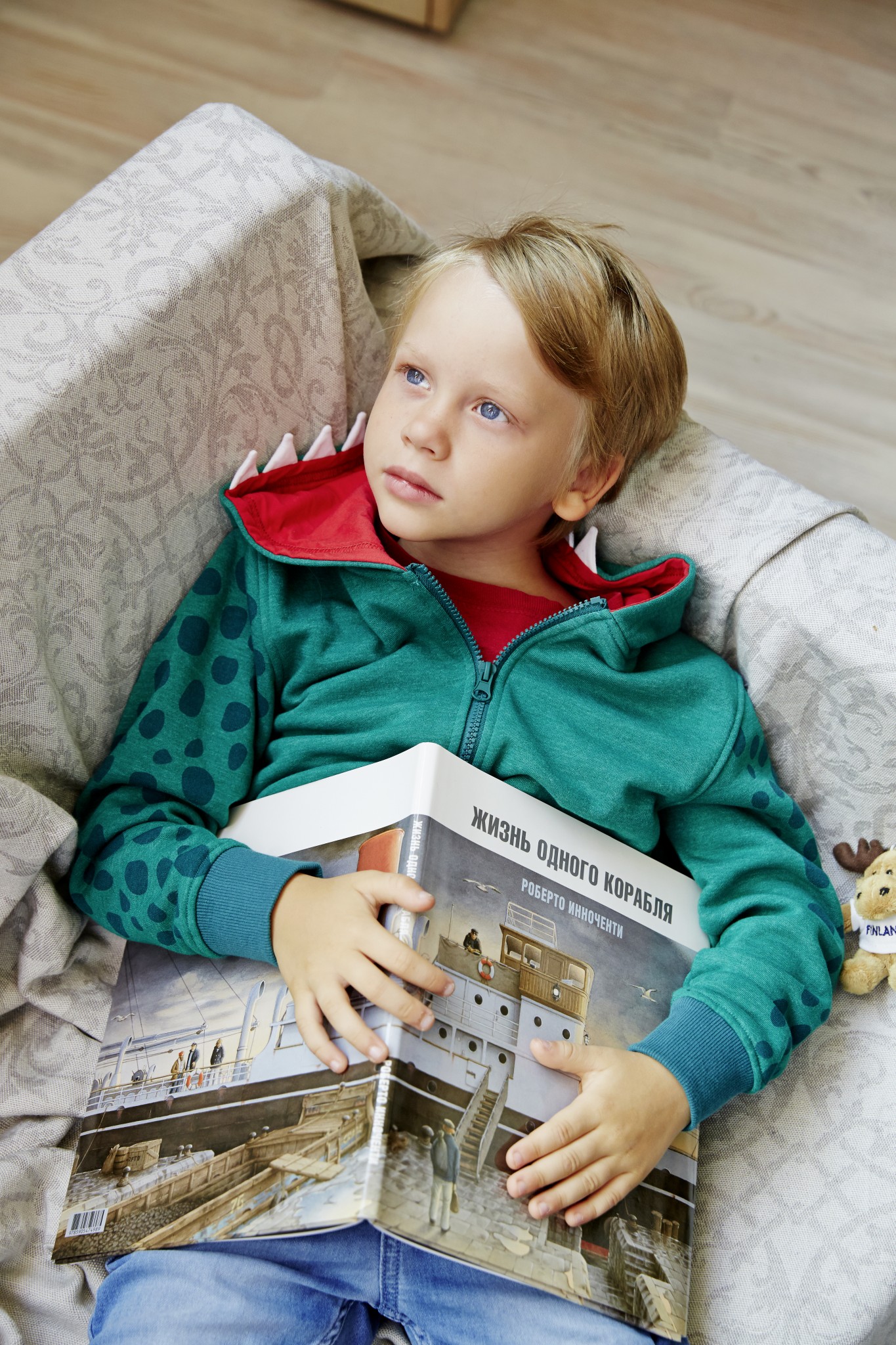 Даня, пять с половиной лет, прочитал для нас Жизнь одного корабля Роберто Инноченти