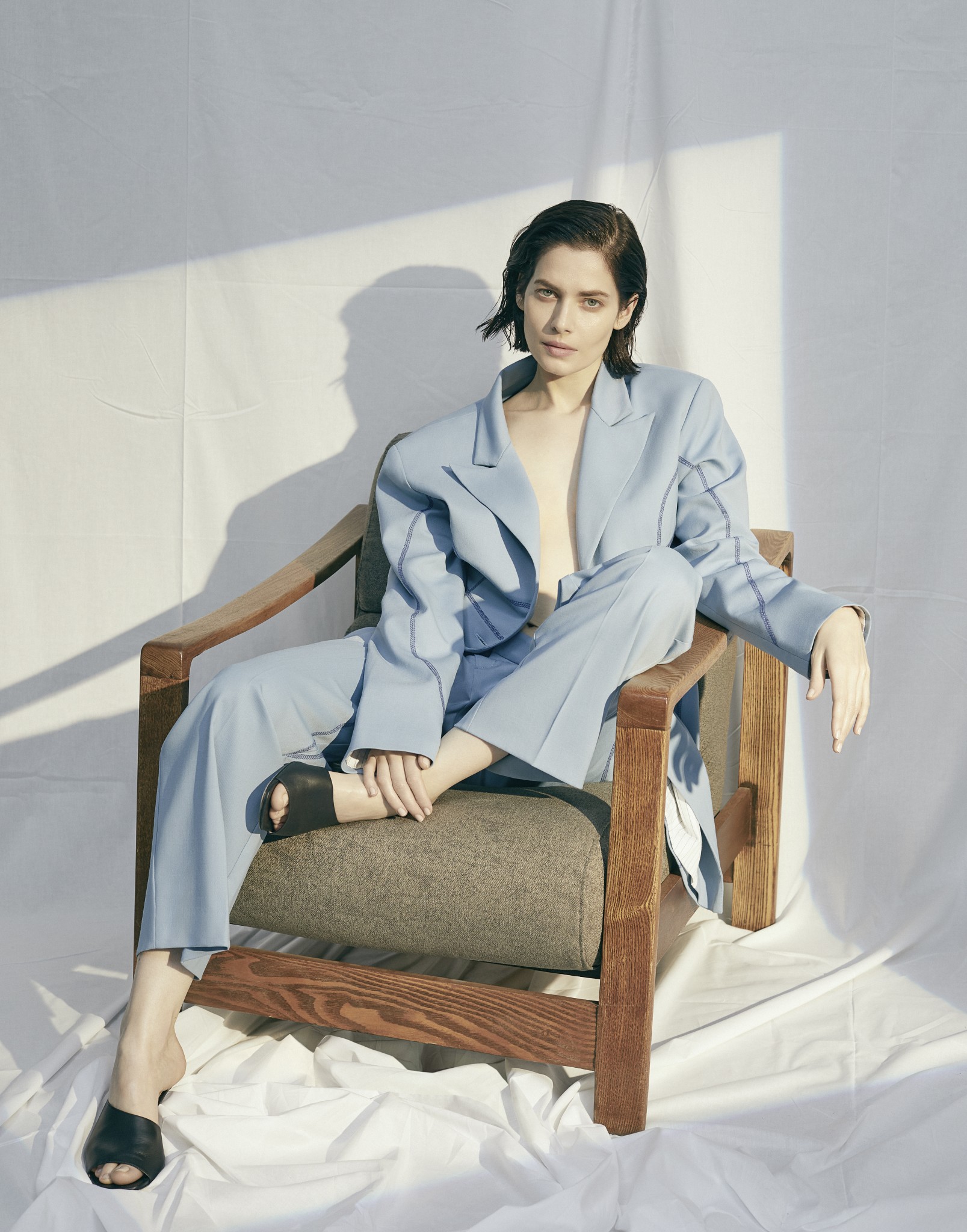 Костюм WOS by Andrey Artyomov, мюли Bally. Стилист: Лилит Рашоян; макияж: Евгения Ленц; прическа: Наталья Коваленкова; ассистент стилиста: Даяна Чарандаева; ассистент фотографа: Константин Егонов; продюсер: Полина Величко