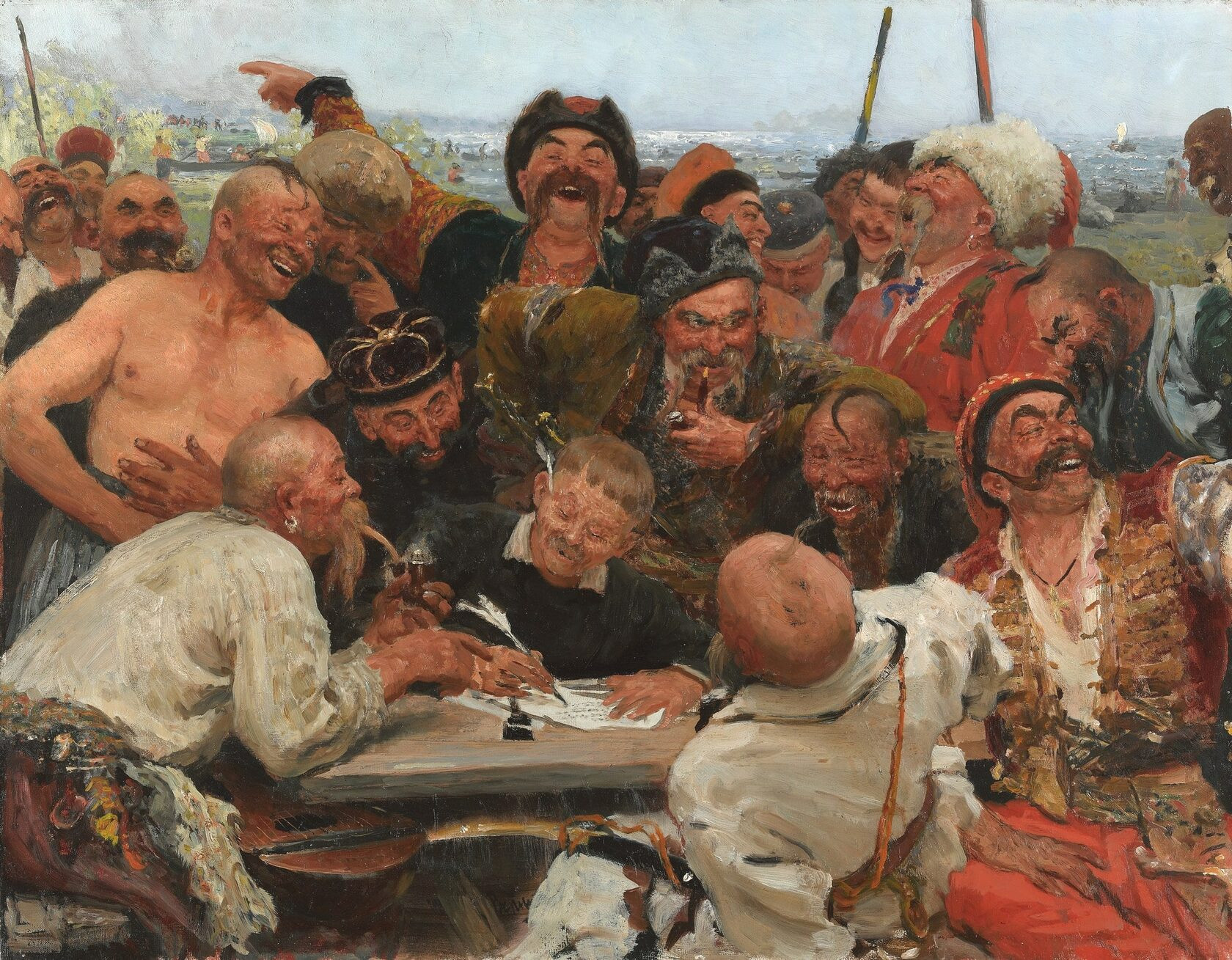 Для картины «Запорожцы пишут письмо турецкому султану» художнику позировали многие его известные современники. Например, прообразом писаря стал сам Дмитрий Яворницкий, для изображения высокого худого казака с длинными усами позировал солист Мариинского театра Федор Стравинский, а запорожца в высокой черной шапке рядом с писарем Репин писал с мецената Василия Тарновского.