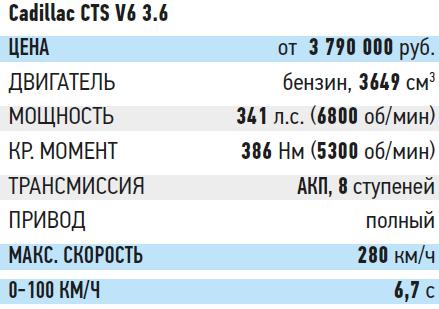 Именно поэтому «американец» прибыл в Россию с базовым 2-литровым турбированным двигателем, дефорсированным до 240 л.с. Мотор лишили 36 «лошадок», чтобы угодить потенциальным владельцам – так он попадает в более «доступную» налоговую категорию. Желание похвальное, и «американец» действительно выйдет чуть дешевле конкурентов с агрегатами той же мощности, но в чемпионате самых доступных базовых версий все-таки проиграет. Цены на заднеприводный CTS с мотором 2.0 начинаются с 2 790 000 руб., полноприводная версия обойдется на 200 000 руб. дороже.