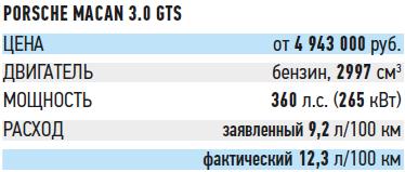 Но впечатляет даже не это, а то, как ведет себя подвеска – именно она делает GTS действительно острой штучкой. Несколько километров пути, и уже забываешь, что Macan в условиях испытаний весит две тонны с лишним, что он не такой уж и маленький, что у него высокий центр тяжести. Забываешь вообще обо всем и занимаешься главным – управлением.