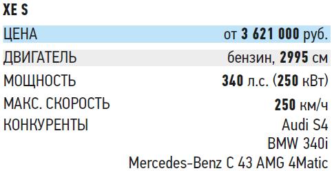 Аристократичность XE S удачно сочетает со спортивным характером, ни на йоту не поступаясь комфортом. Неровности дороги до салона не доходят, уличный шум внутрь не попадает, стрелка нашего фонометра реагировала только на рев V-образной «шестерки», когда водитель продавливал педаль газа в пол. Передняя подвеска работает очень эффективно, задняя чуть более чувствительна к изъянам асфальта, и это точно отметит парочка пассажиров на втором ряду. Там, кстати, может поместиться и третий человек, но только тогда уже все «заднескамеечники» будут ощущать себя не в первом, а всего лишь бизнес-классе.