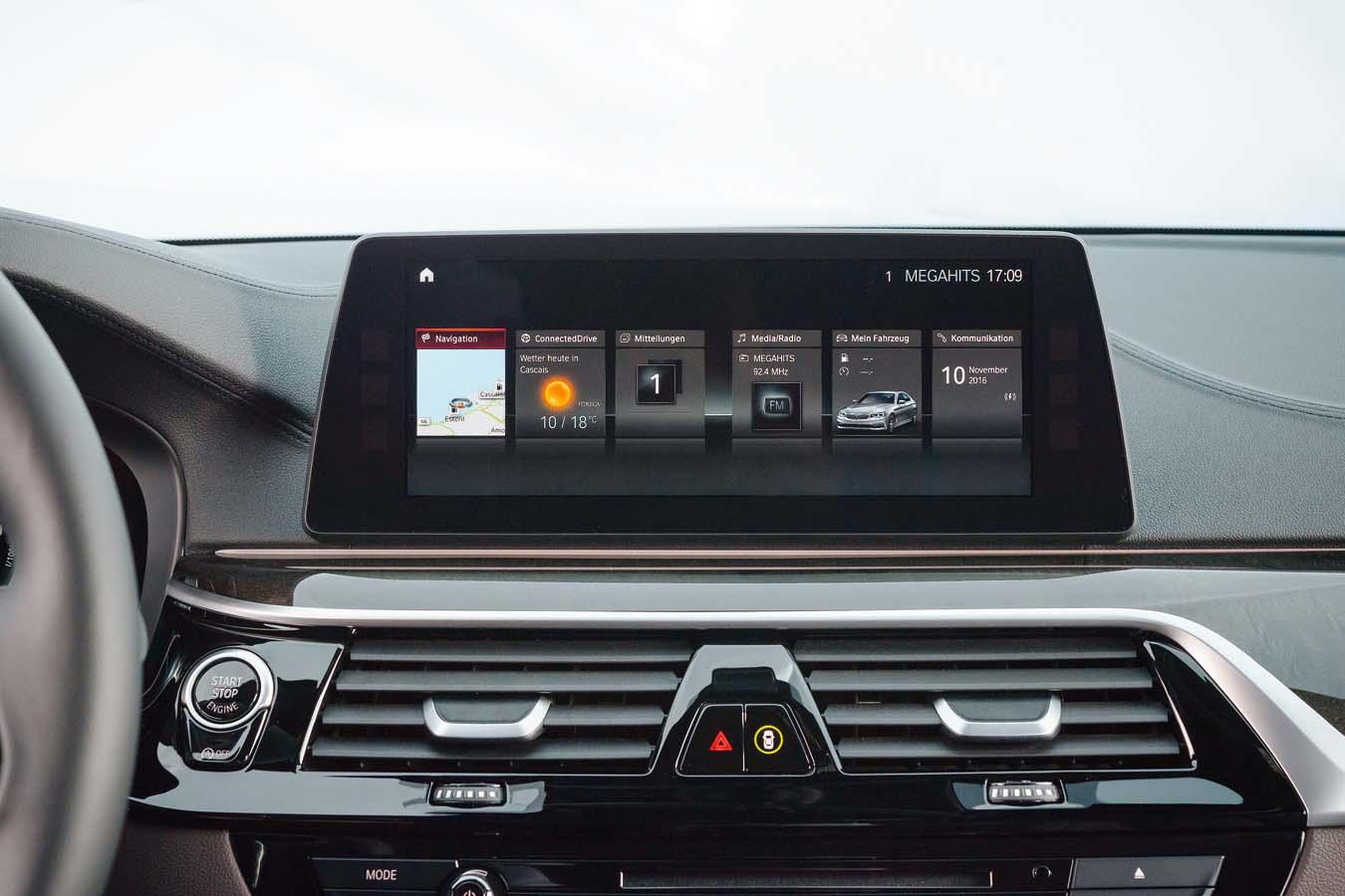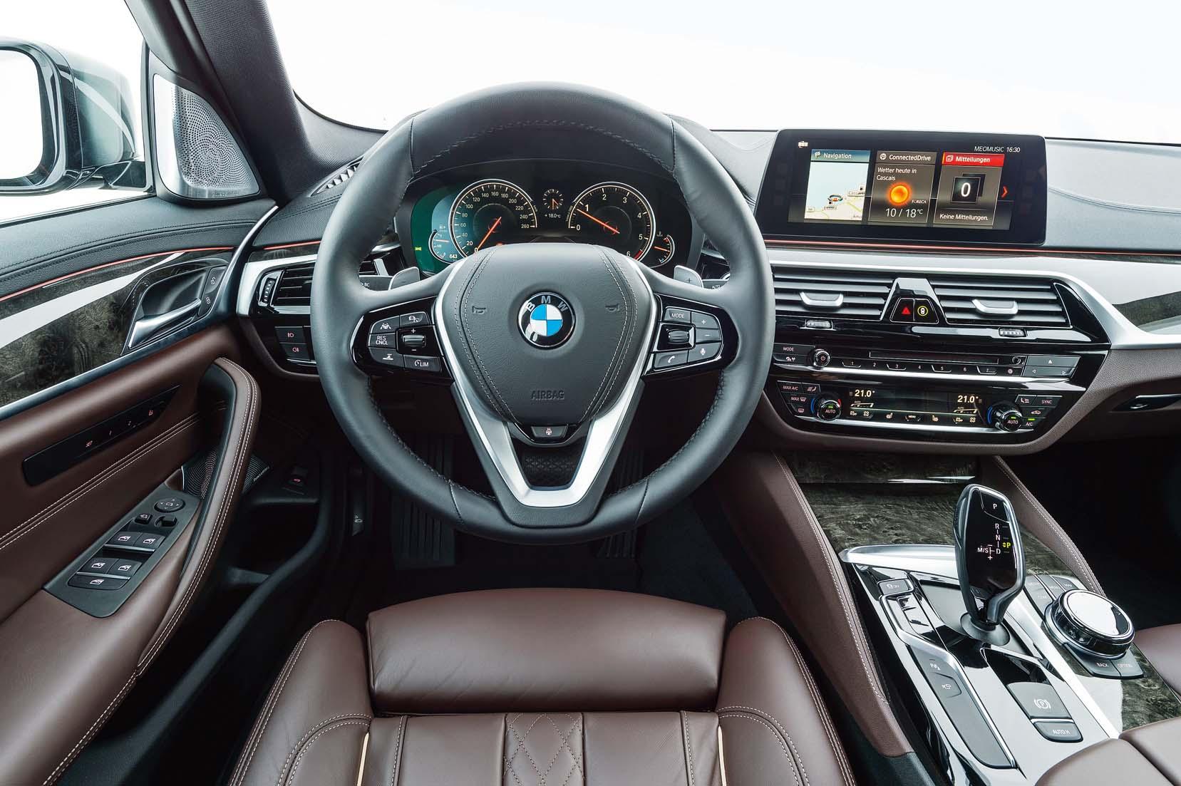 В передней части нового BMW 5-й серии – вытянутые диодные фары, к которым можно добавить дальний свет с лазерной технологией. Внимание к деталям, форма крыши и кормы позволили оптимизировать аэродинамику – она проработана великолепно. Внутренняя атмосфера привычна тем, кто знаком с произведениями баварцев: дорогие материалы, высокие технологии, забота даже о мельчайших деталях. В общем, здесь есть все. На передней панели с доминантной и традиционно развернутой к водителю консолью разместился 10,3-дюймовый экран новой медиасистемы.